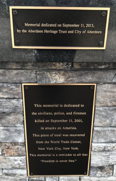 SEE ALSO-CITY OF ABERDEEN SEPTEMBER 11, 2001 MEMORIAL PLAQUE