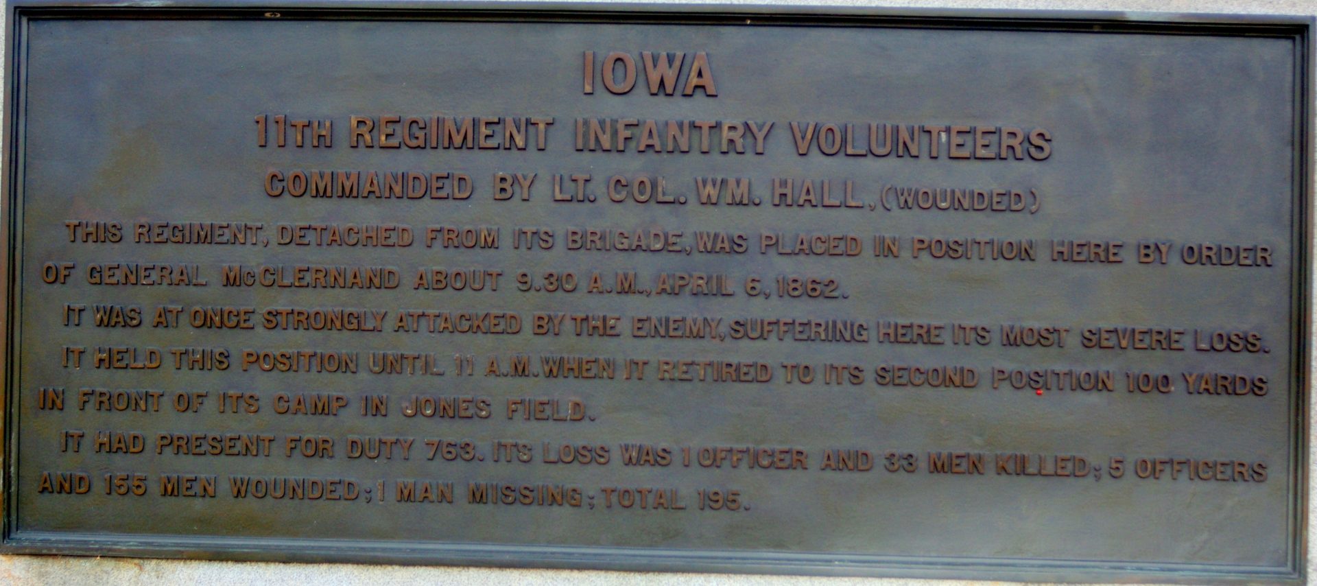 11TH IOWA INFANTRY REGIMENT AT SHILOH MEMORIAL PLAQUE B