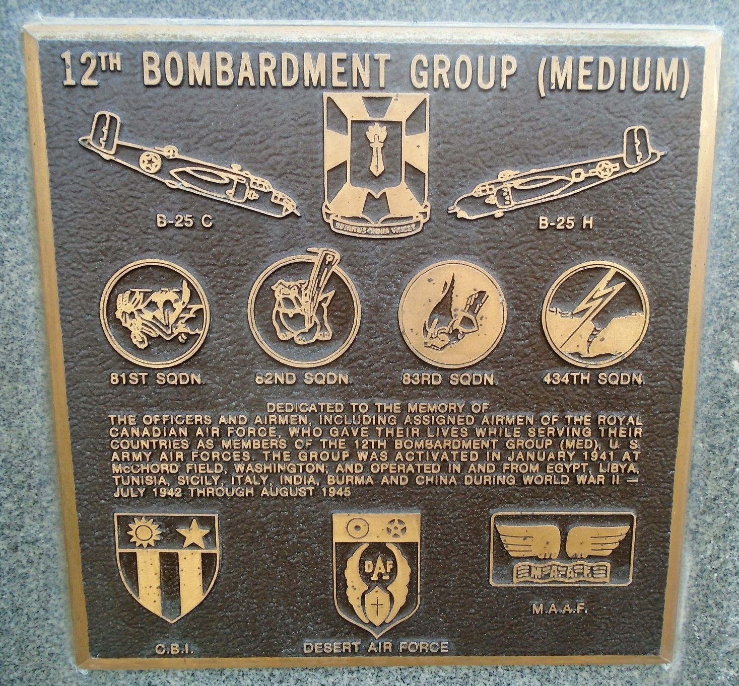 12TH BOMBARDMENT GROUP (MEDIUM) WAR MEMORIAL PLAQUE