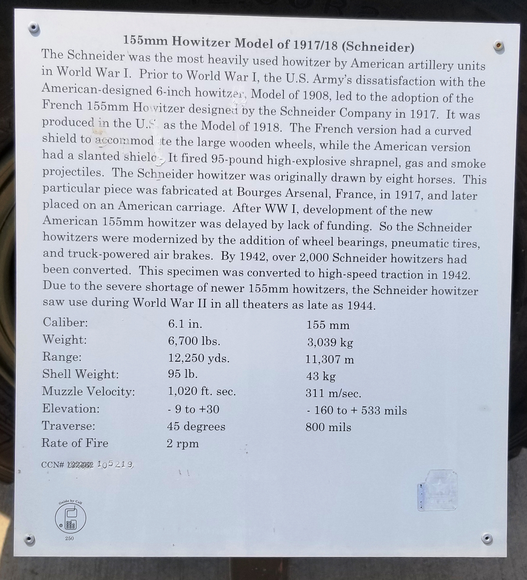 155MM HOWITZER MODEL OF 1917/18 MEMORIAL PLAQUE