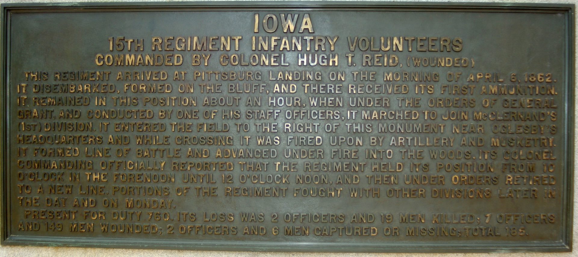 SEE ALSO-15TH IOWA INFANTRY REGIMENT AT SHILOH MEMORIAL
