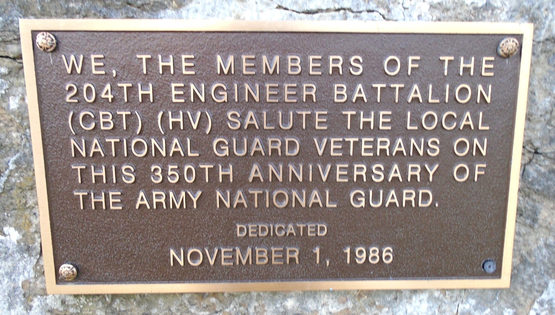204TH ENGINEER BATTALION ARMY NATIONAL GUARD VETERANS MEMORIAL PLAQUE
