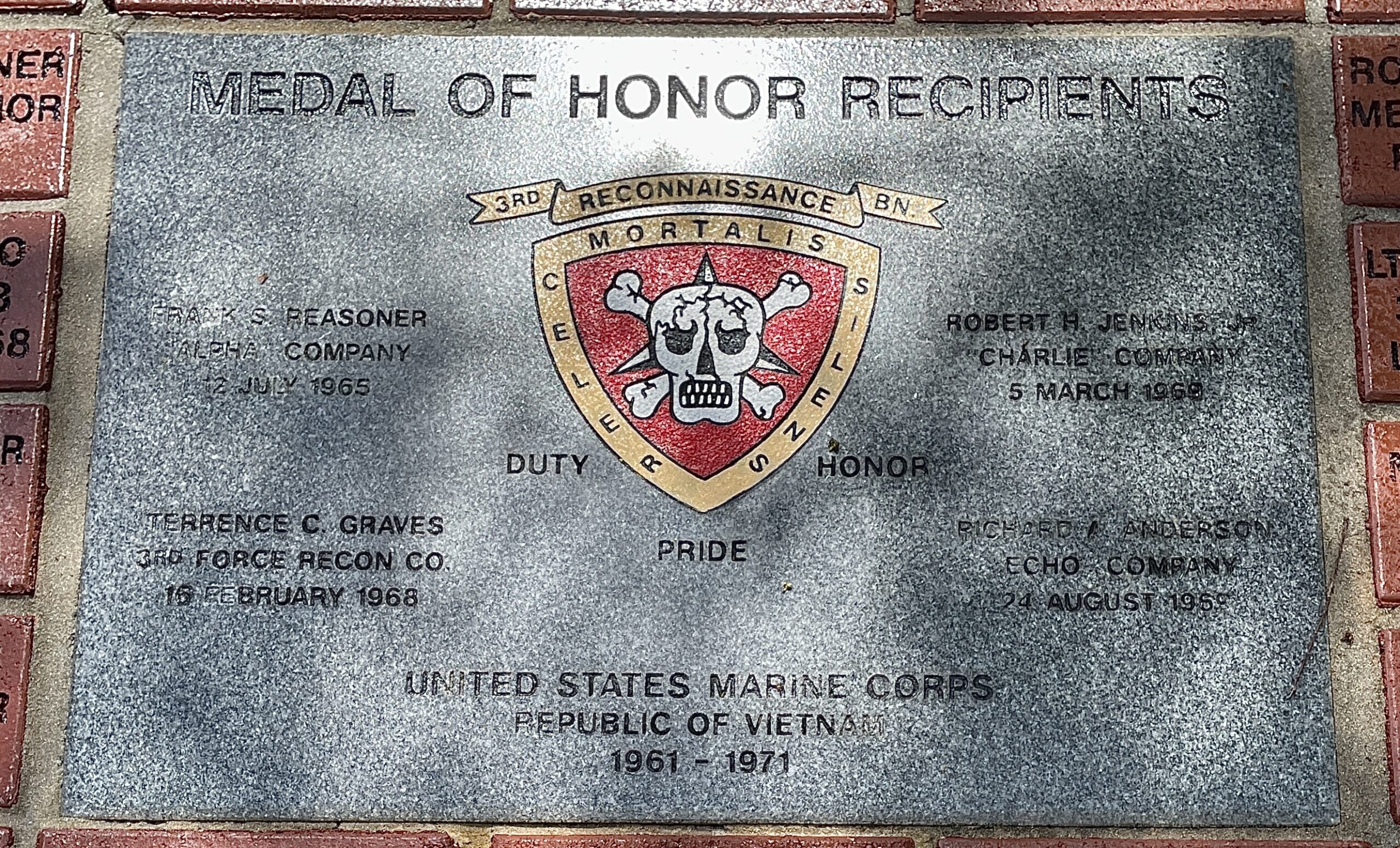 3RD RECONNAISSANCE BATTALION MEDAL OF HONOR RECIPIENTS WAR MEMORIAL CENTER STONE