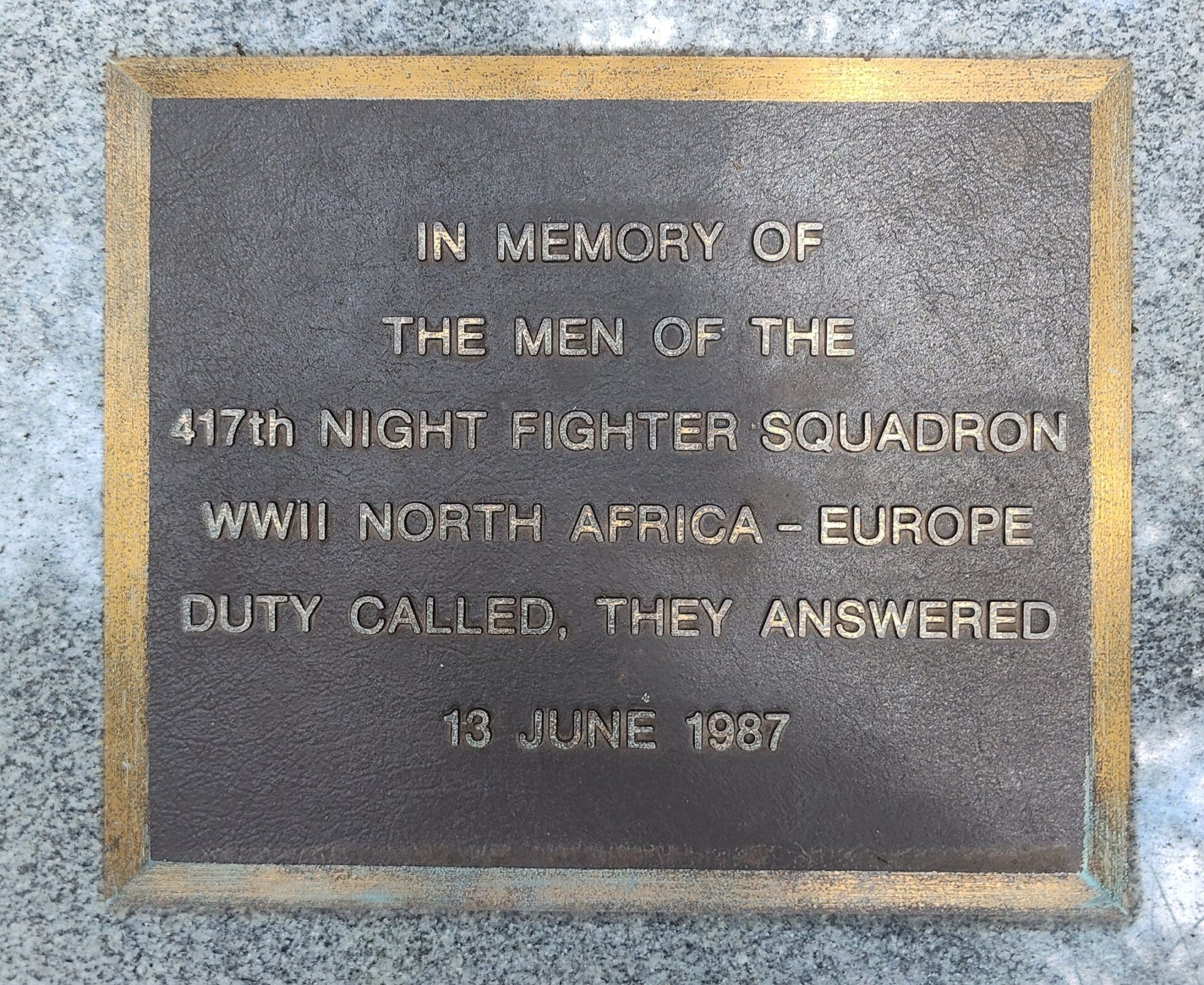 417TH NIGHT FIGHTER SQUADRON WAR MEMORIAL PLAQUE DAYTON