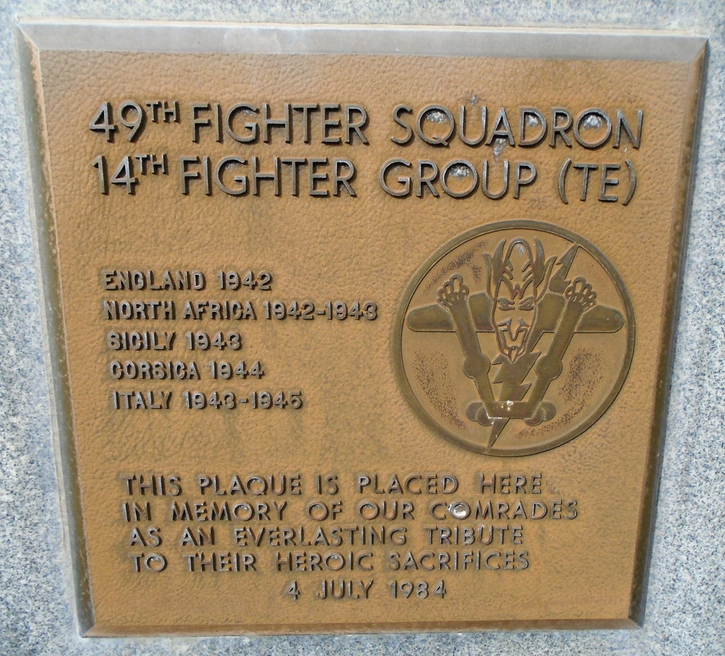 49TH FIGHTER SQUADRON 14TH FIGHTER GROUP (TE) WAR MEMORIAL PLAQUE