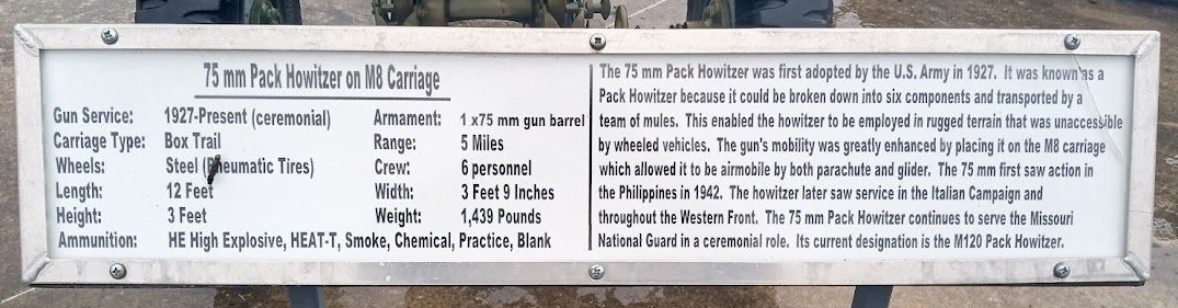 75 MM PACK HOWITZER ON M8 CARRIAGE MEMORIAL PLAQUE