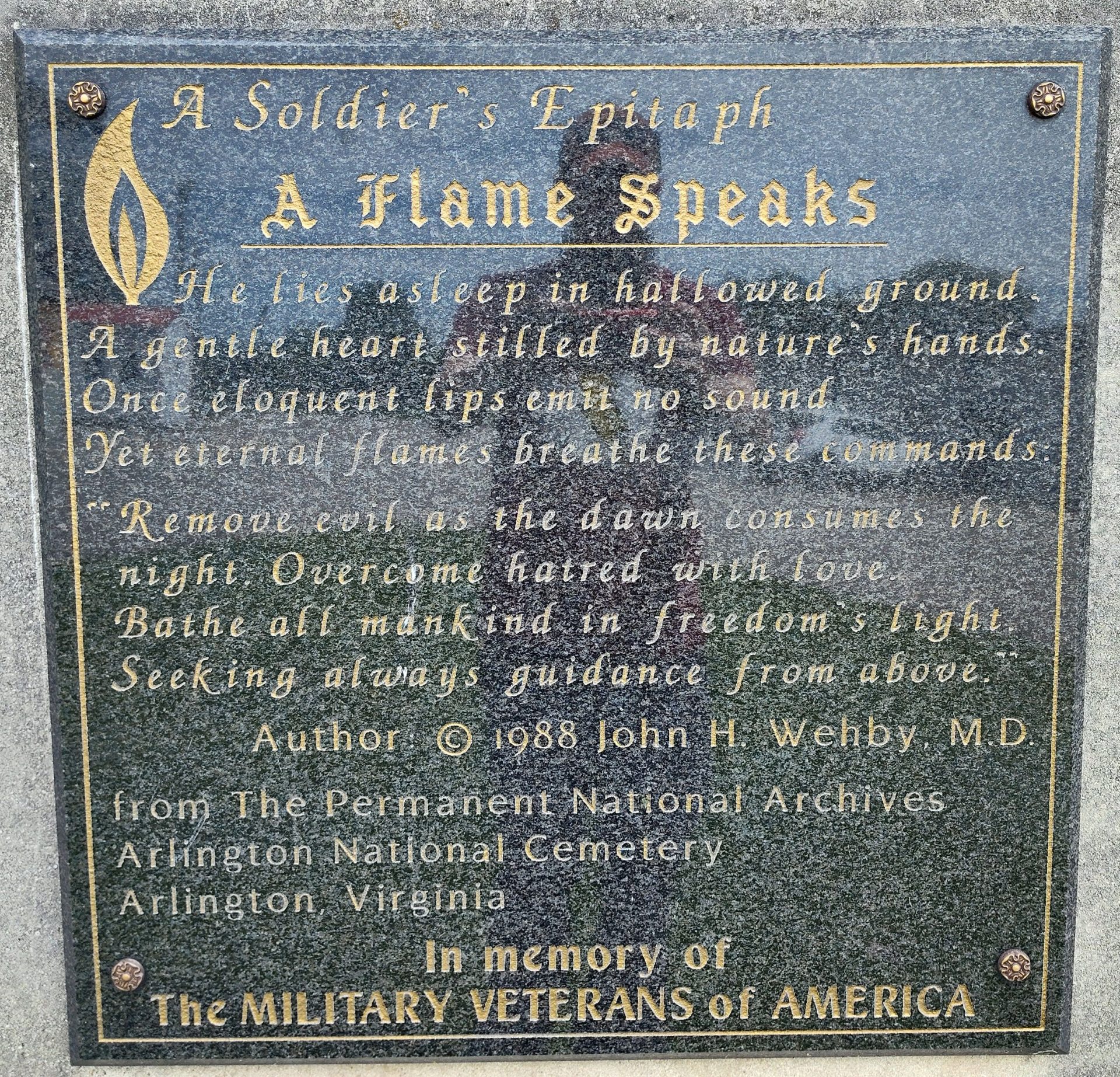 A SOLDIER’S EPITAPH A FLAME SPEAKS WAR MEMORIAL PLAQUE A