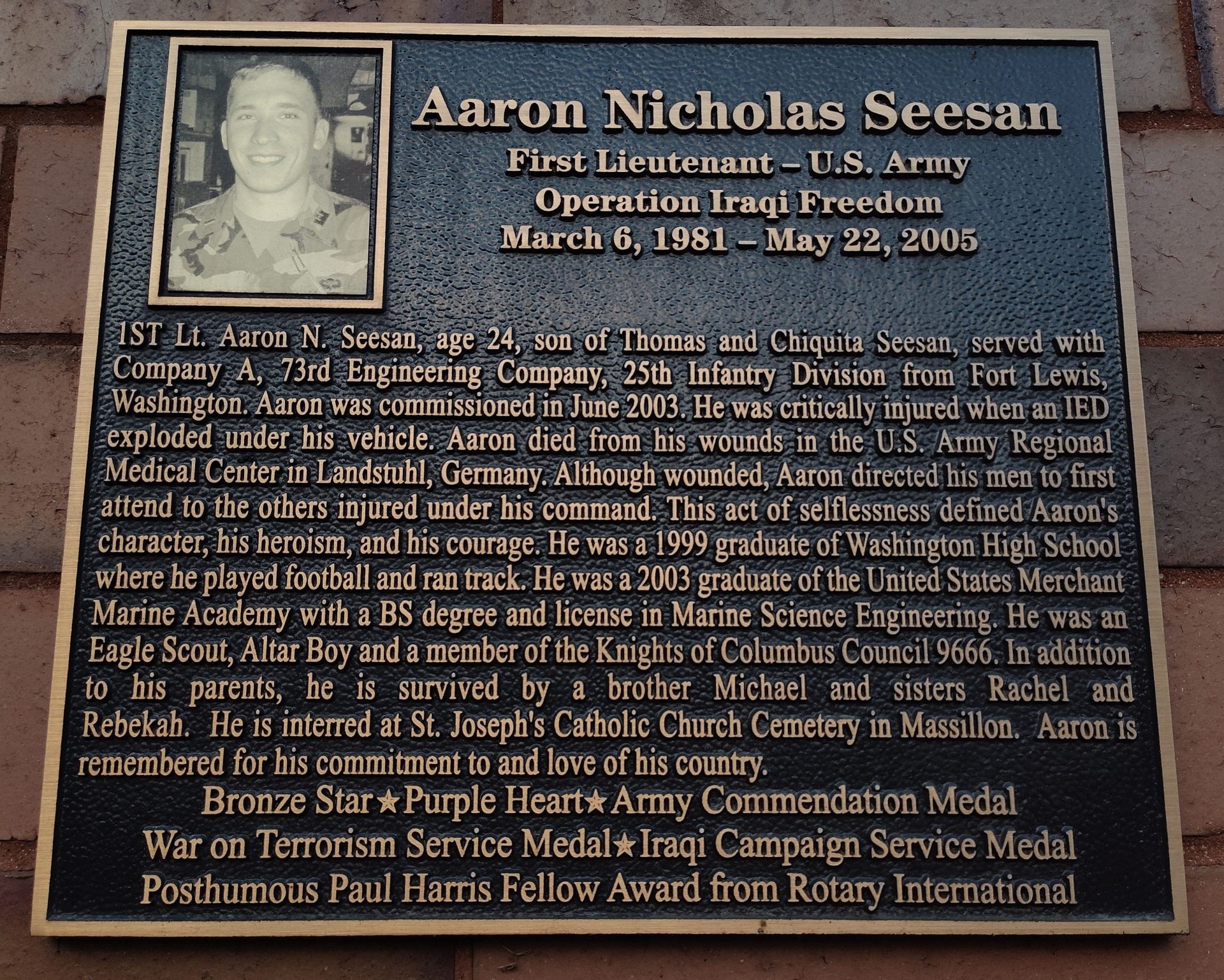 AARON NICHOLAS SEESAN WAR MEMORIAL PLAQUE
