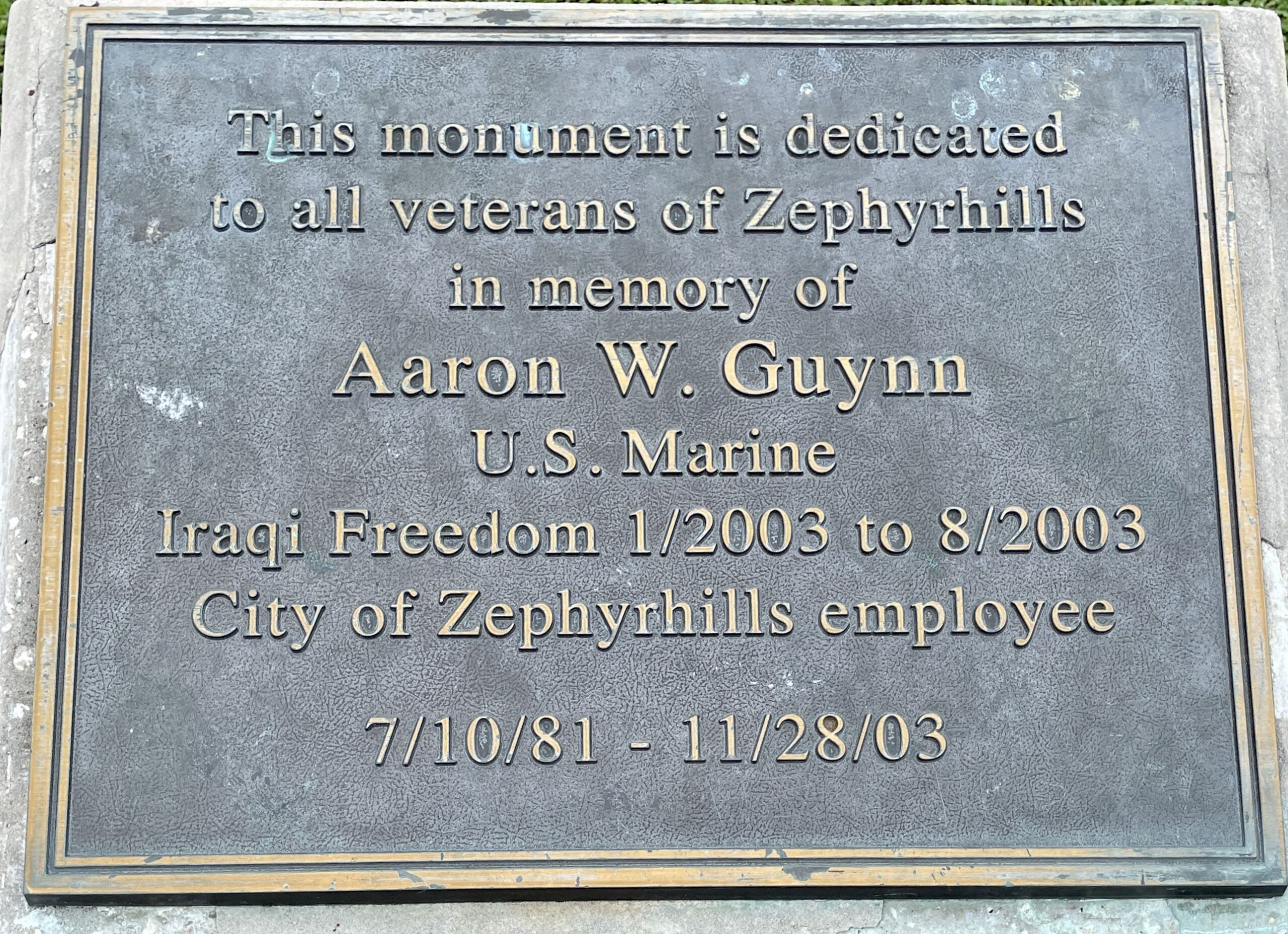 AARON W. GUYNN WAR MEMORIAL PLAQUE