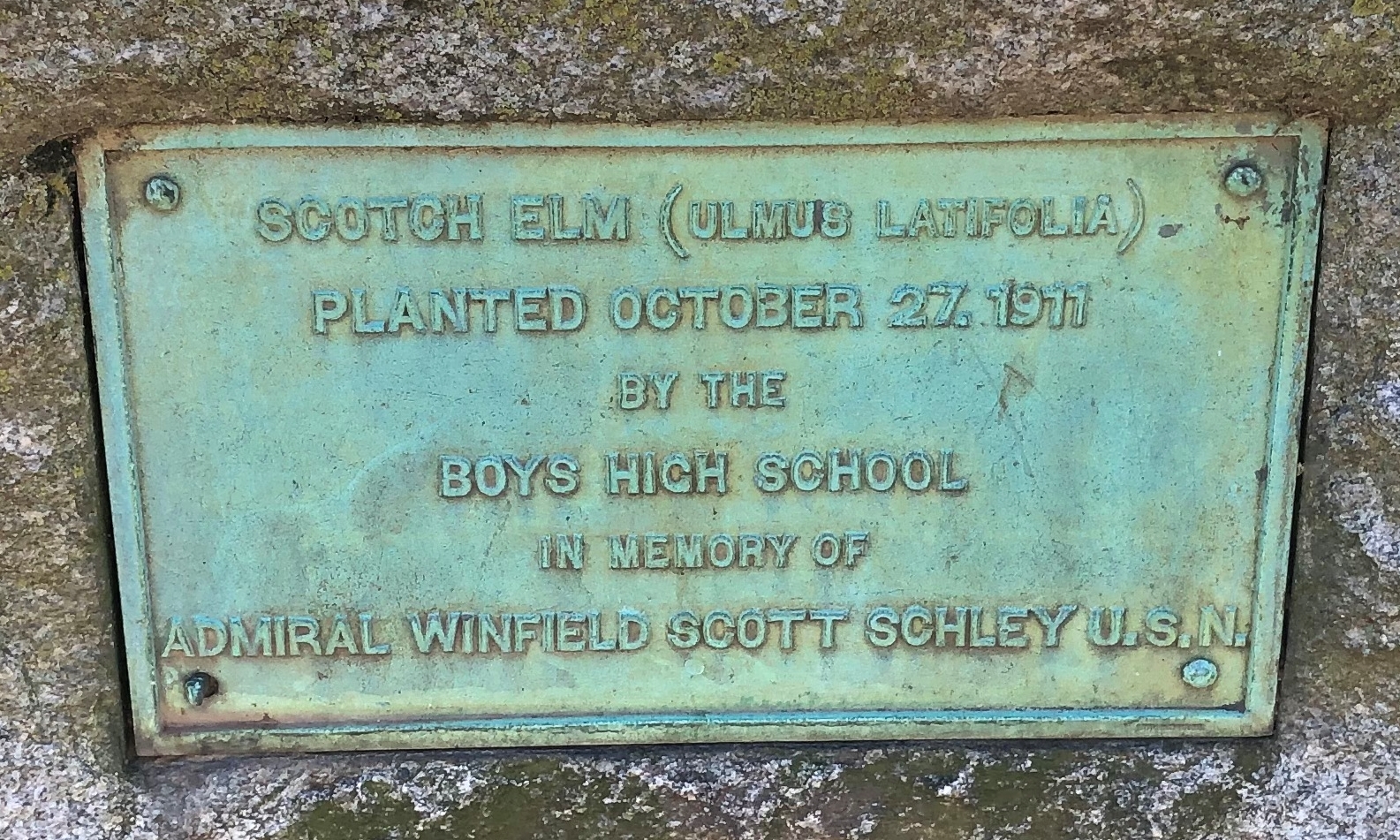ADMIRAL WINFIELD SCOTT SCHLEY U.S.N. MEMORIAL TREE PLAQUE