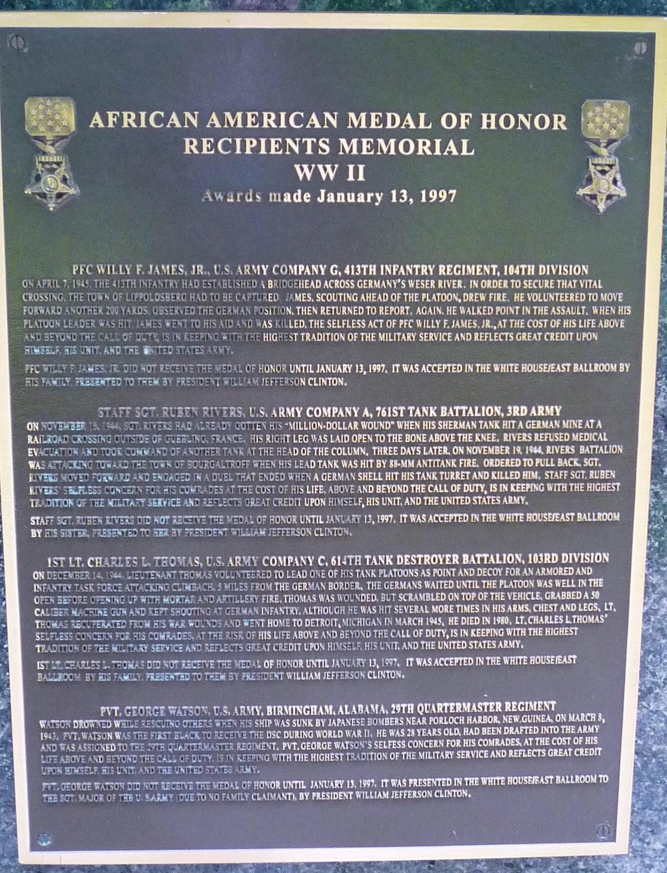 AFRICAN AMERICAN MEDAL OF HONOR RECIPIENTS MEMORIAL PLAQUE J
