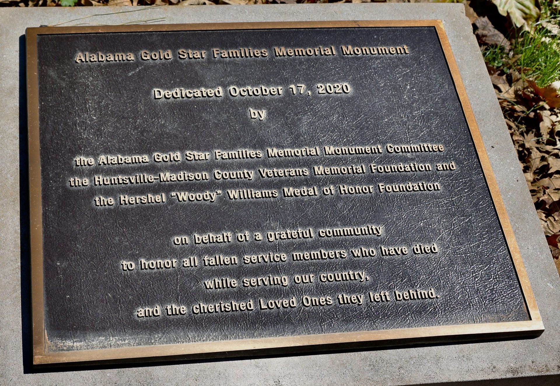 ALABAMA GOLD STAR FAMILIES MEMORIAL MONUMENT PLAQUE A