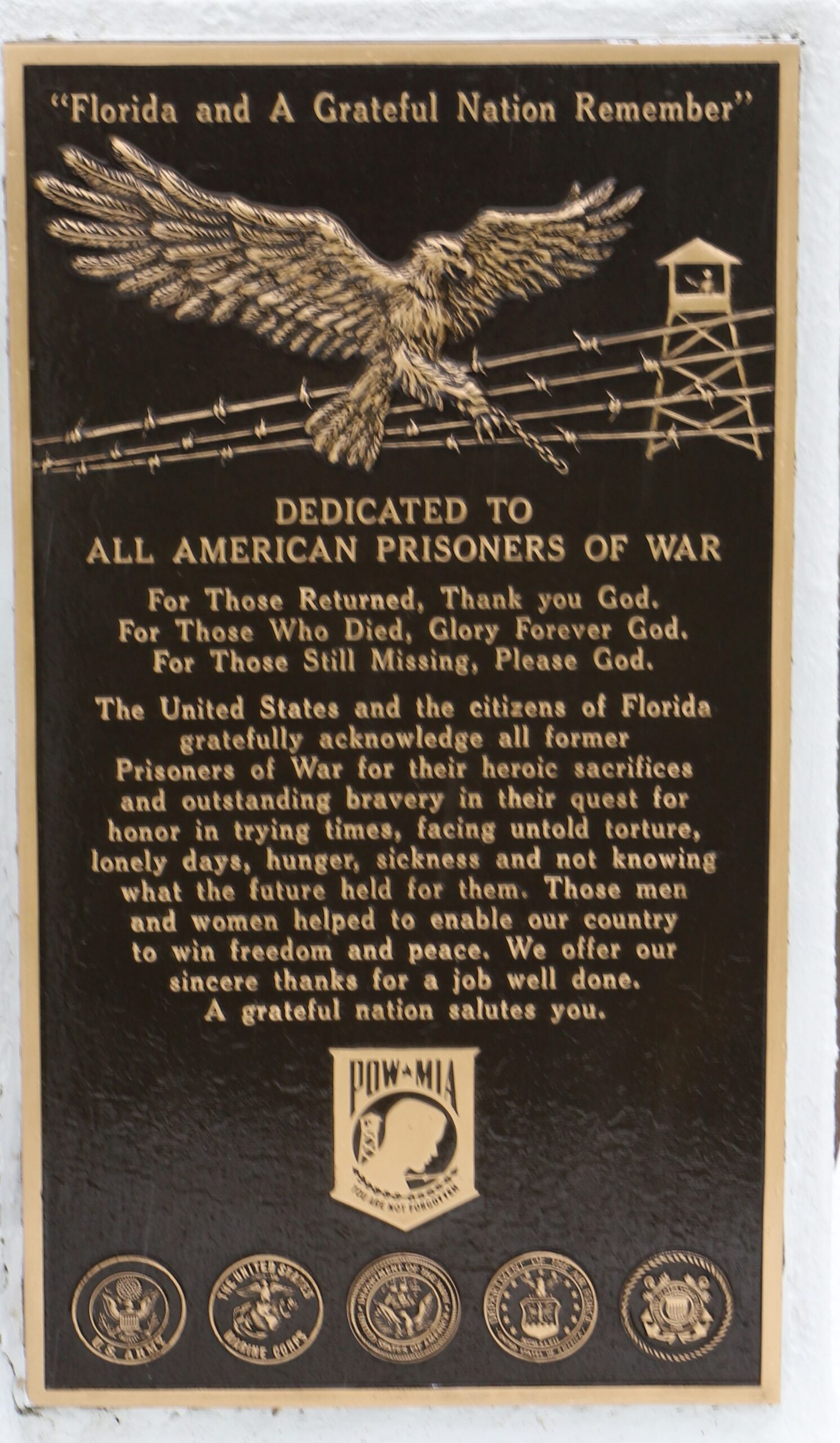ALL AMERICAN PRISONERS OR WAR MEMORIAL PLAQUE