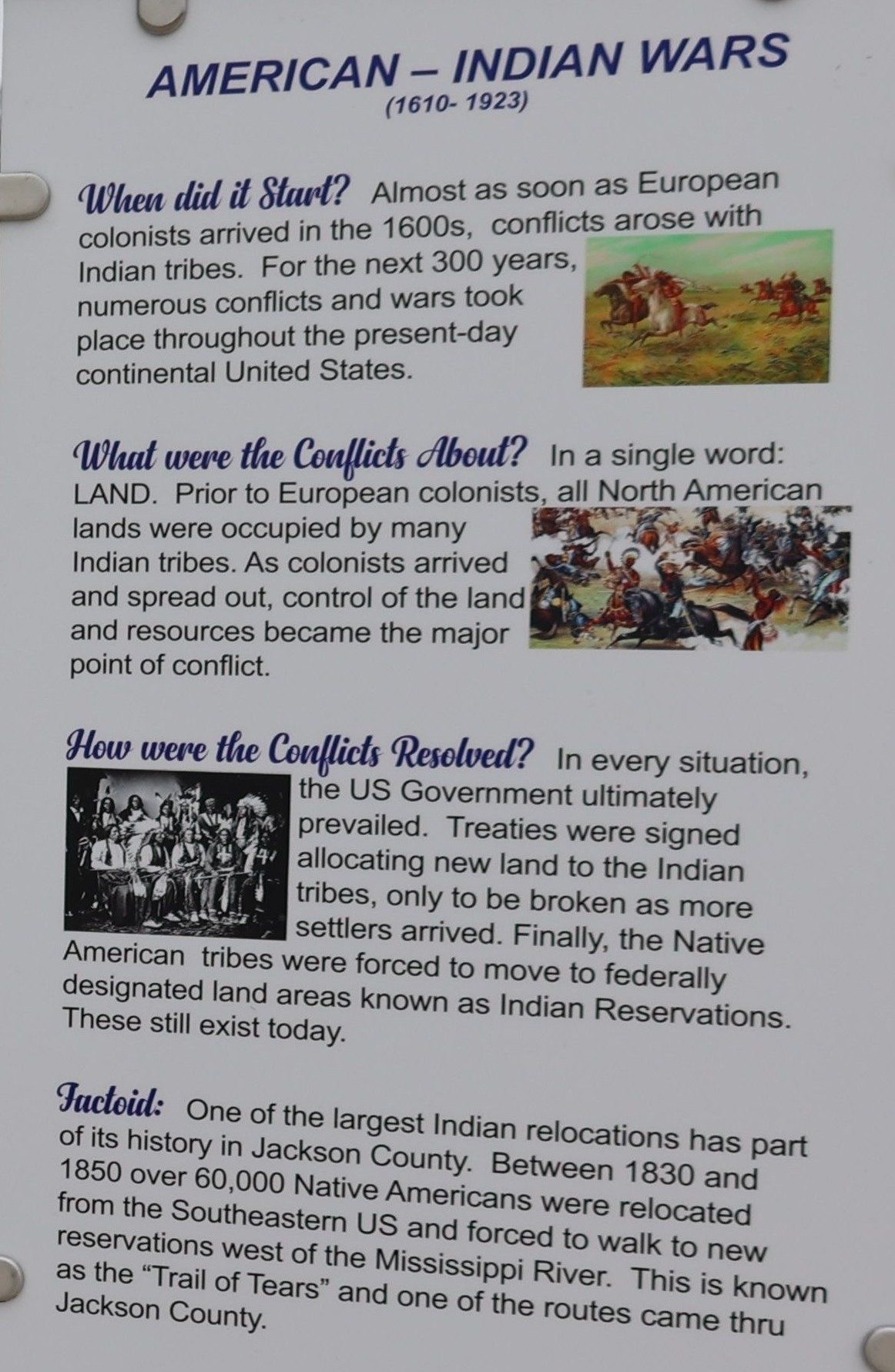 AMERICAN-INDIAN WARS MEMORIAL PLAQUE