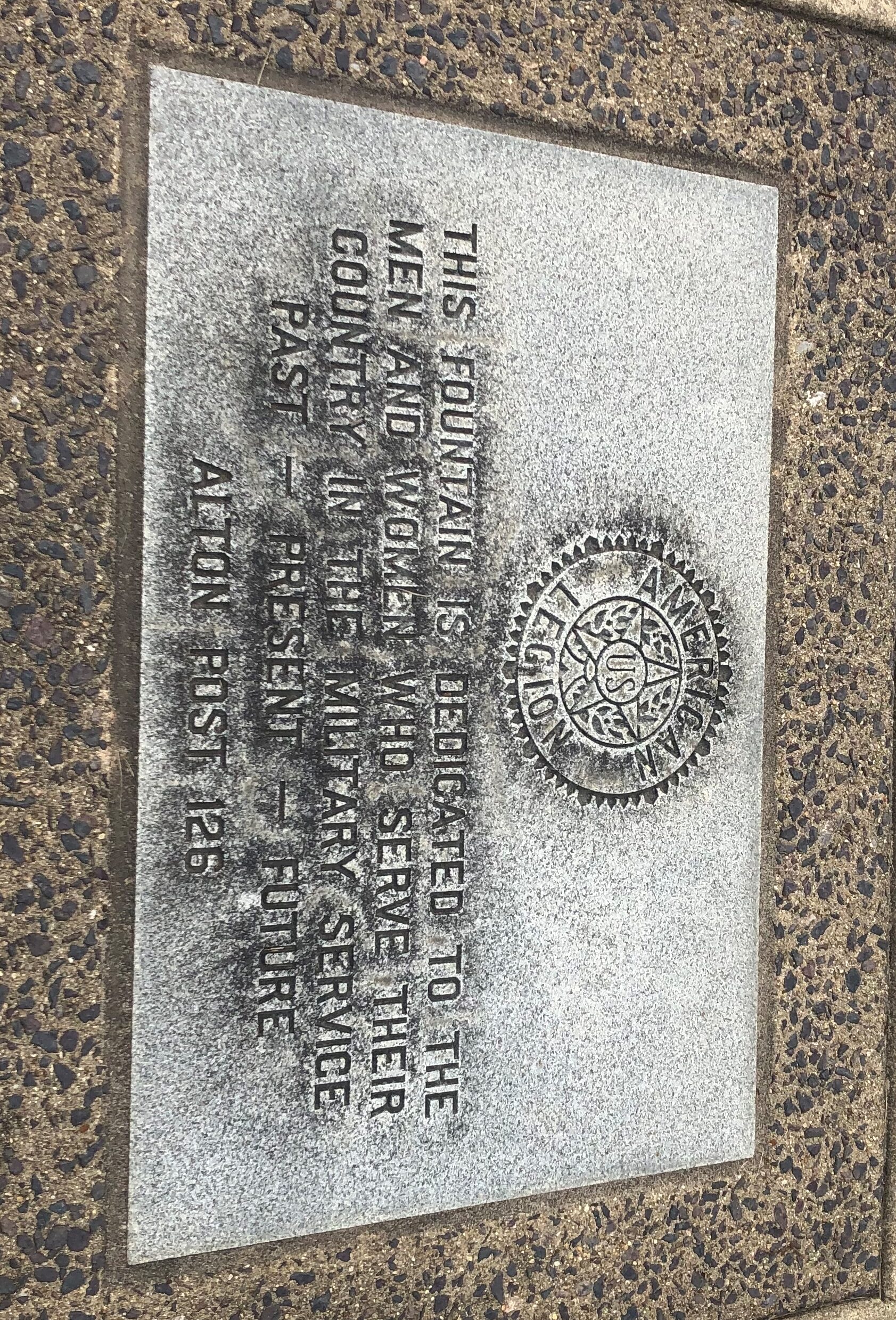 AMERICAN LEGION ALTON POST 126 VETERANS MEMORIAL FOUNTAIN DEDICATION STONE
