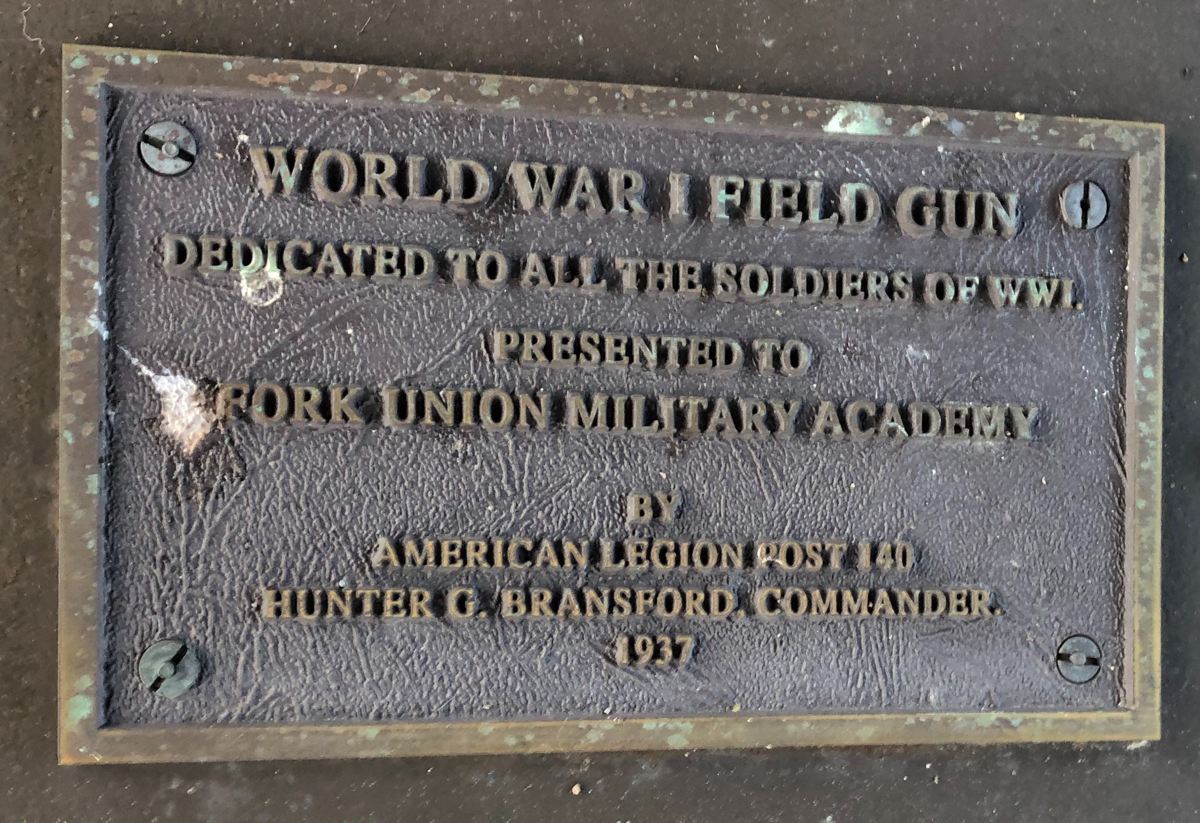 AMERICAN LEGION POST 140 WORLD WAR I FIELD GUN MEMORIAL PLAQUE
