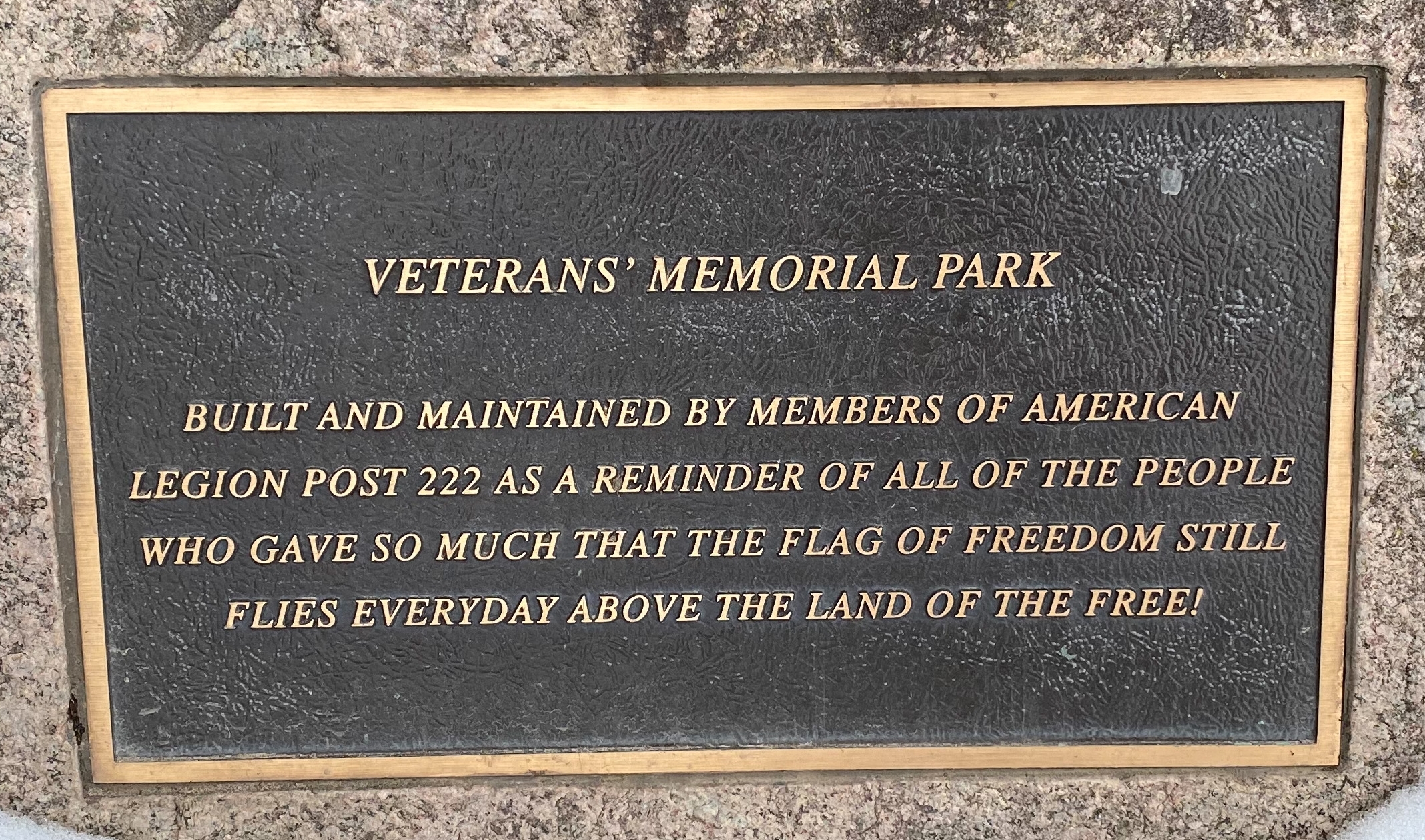 AMERICAN LEGION POST 222 VETERANS MEMORIAL PARK PLAQUE