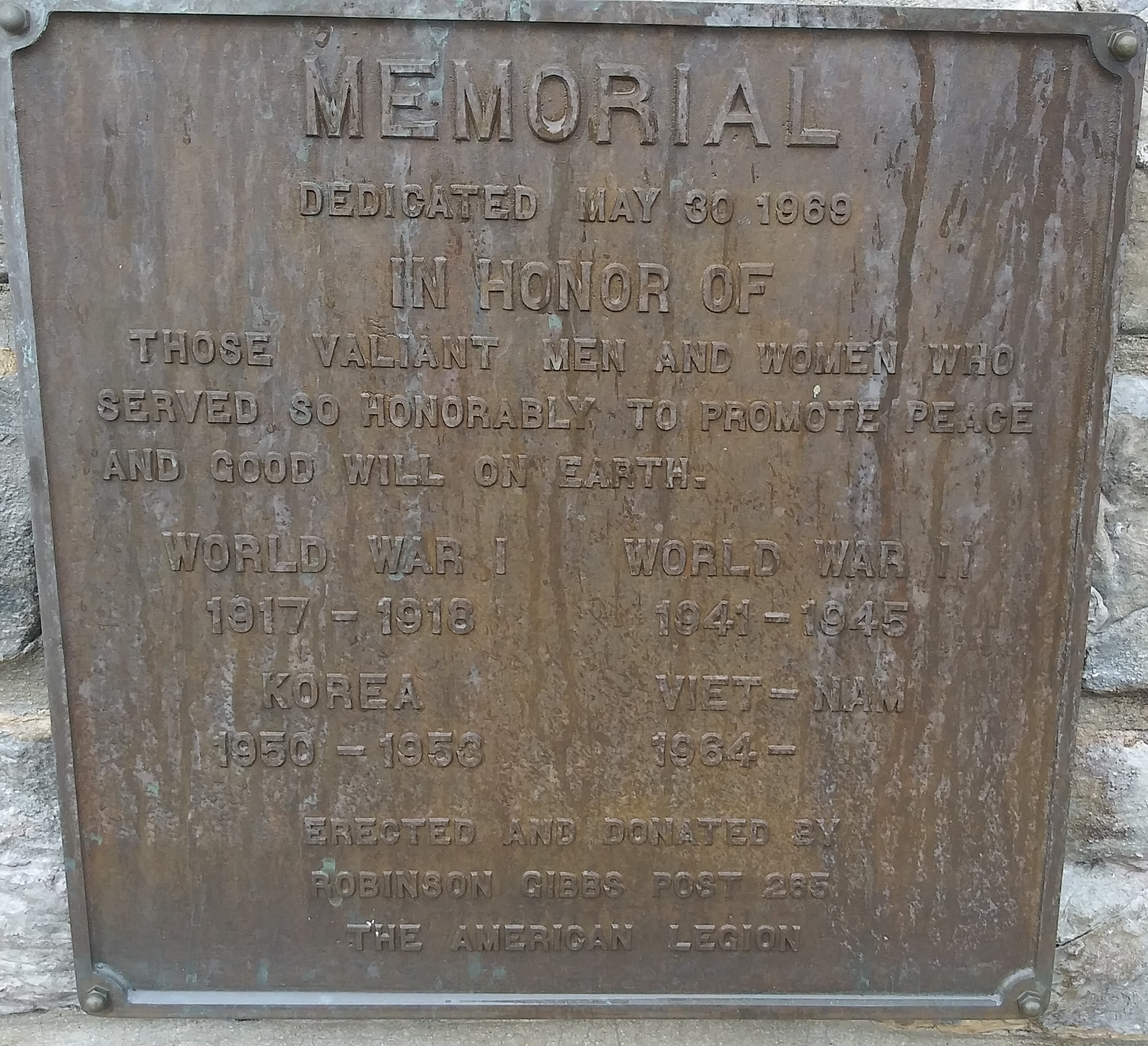 AMERICAN LEGION POST 265 VETERANS MEMORIAL PLAQUE ORIGINAL