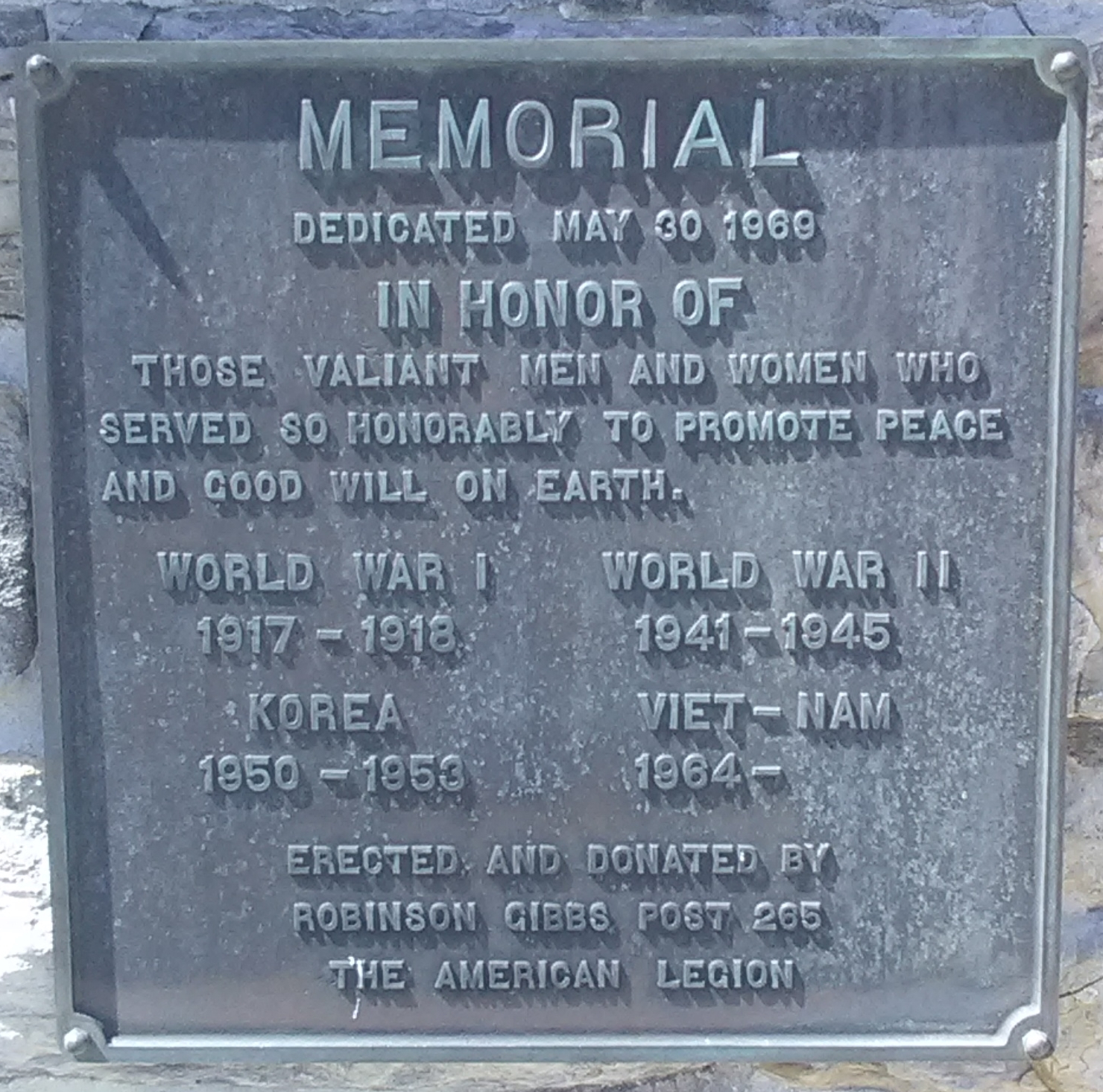 SEE ALSO-AMERICAN LEGION POST 265 VETERANS MEMORIAL PLAQUE ORIGINAL