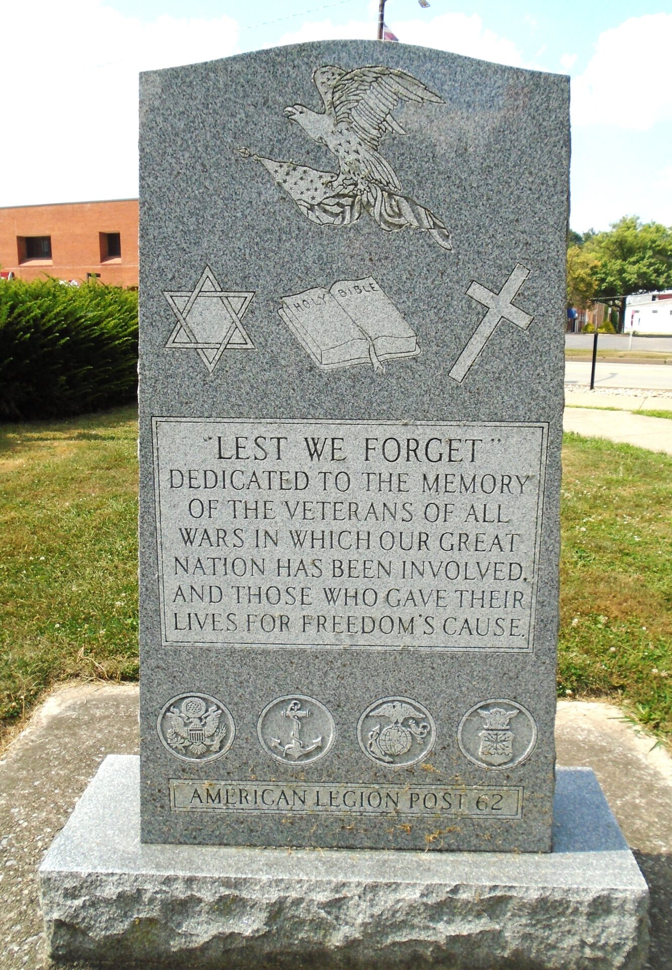 AMERICAN LEGION POST 62 “LEST WE FORGET” WAR MEMORIAL