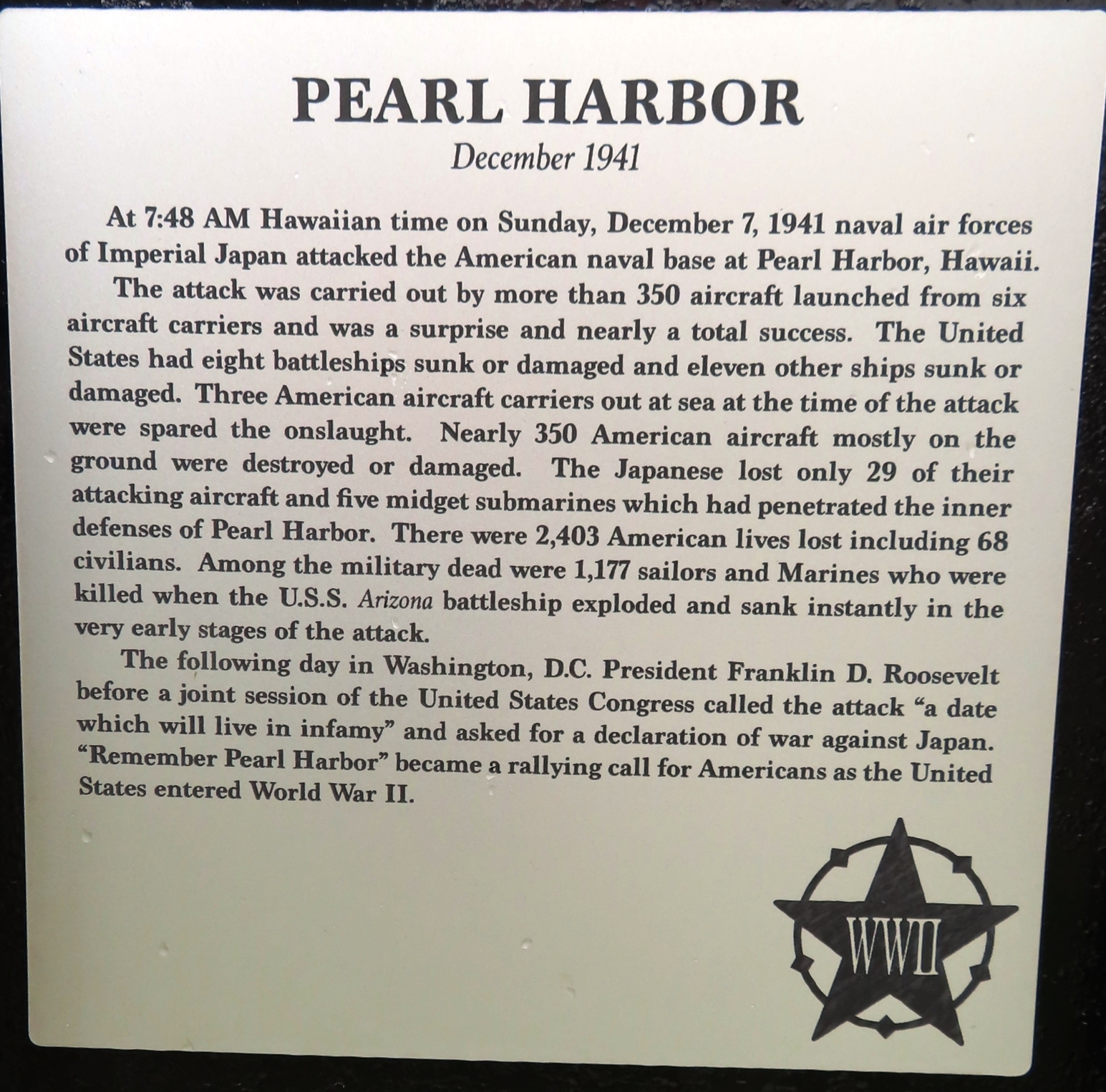 Wars Commemorated: WORLD WAR II