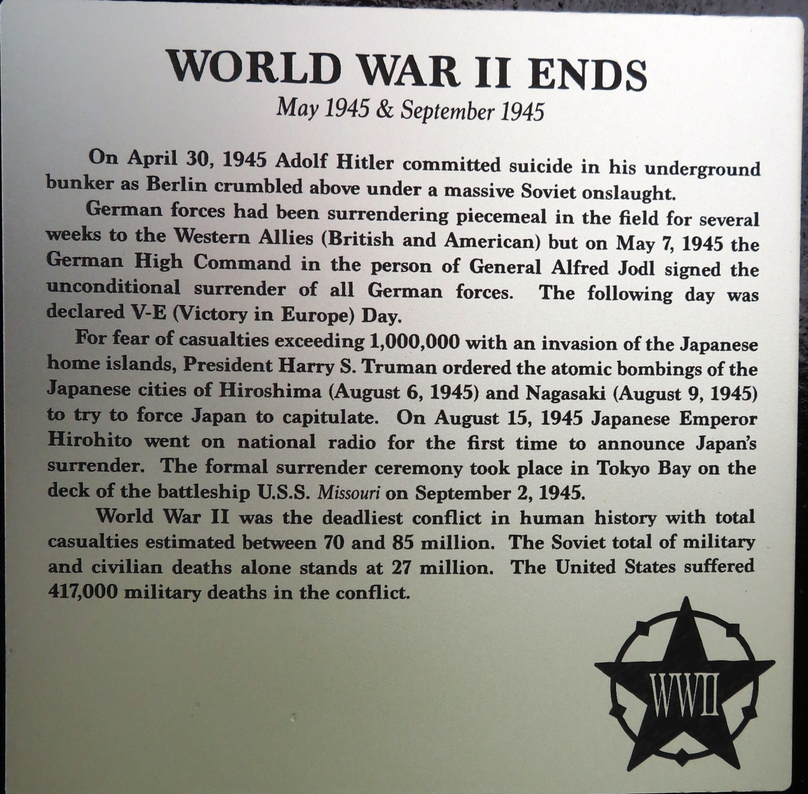 Wars Commemorated: WORLD WAR II