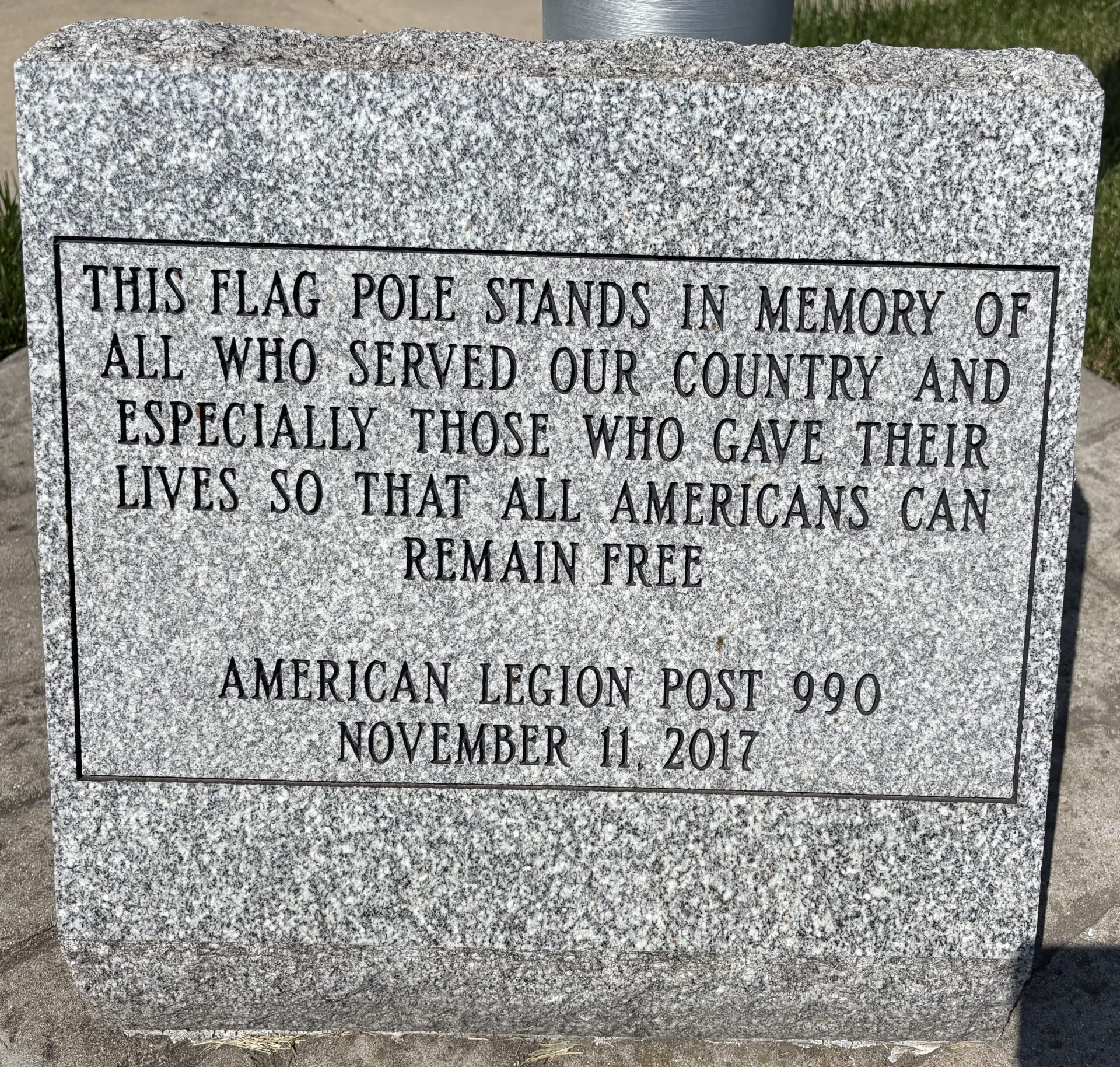 AMERICAN LEGION POST 990 FLAG POLE MEMORIAL STONE
