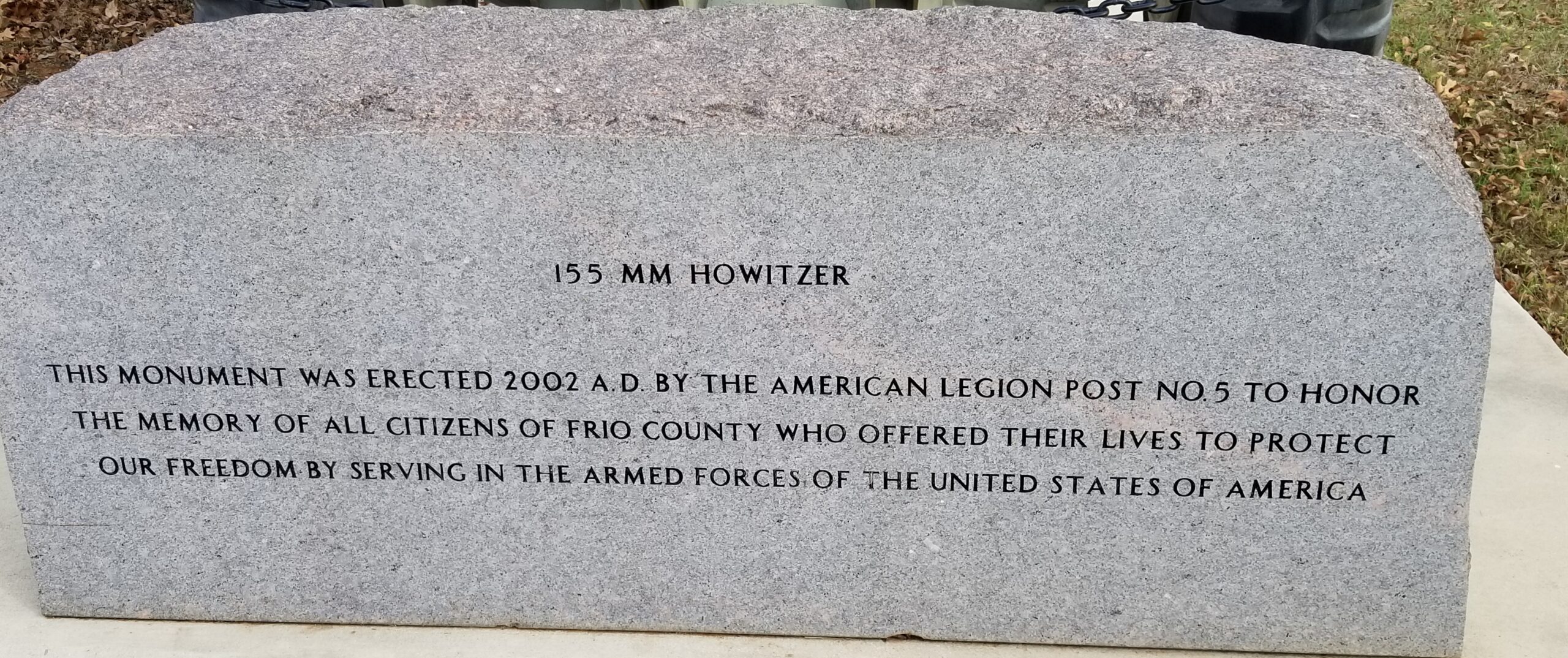 AMERICAN LEGION POST NO. 5 155 MM HOWITZER WAR MEMORIAL STONE