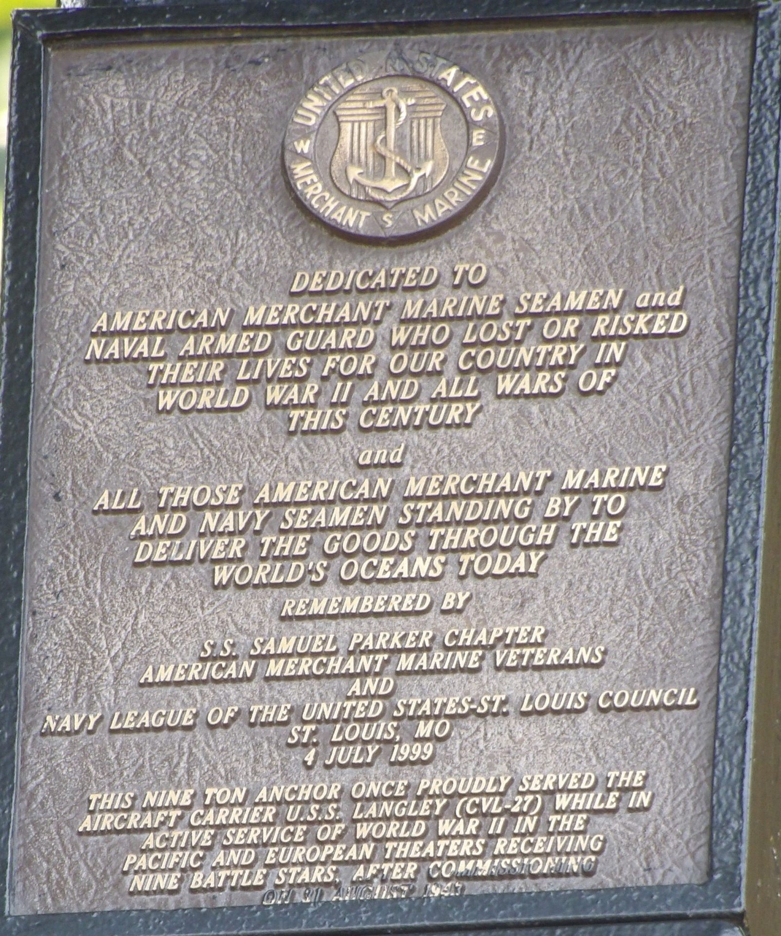 AMERICAN MERCHANT MARINE SEAMEN AND NAVAL ARMED GUARD MEMORIAL PLAQUE A