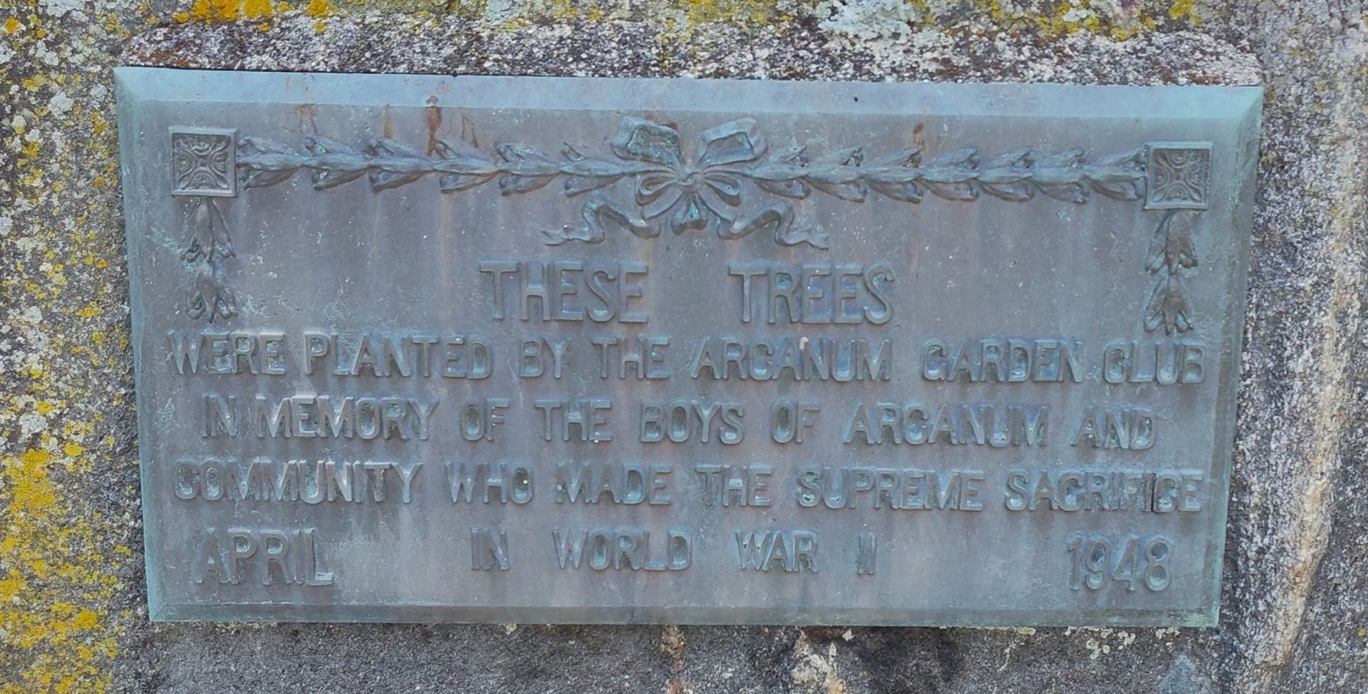 ARCANUM GARDEN CLUB SUPREME SACRIFICE MEMORIAL TREES PLAQUE