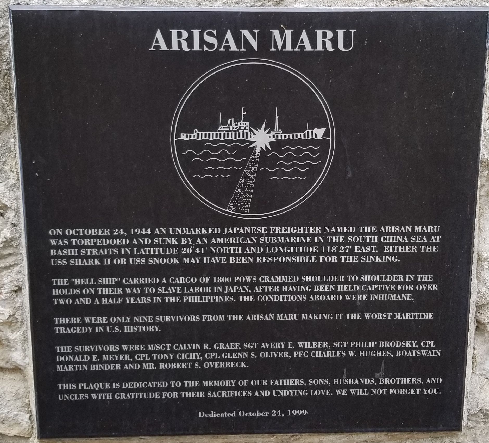 ARISAN MARU WAR MEMORIAL PLAQUE