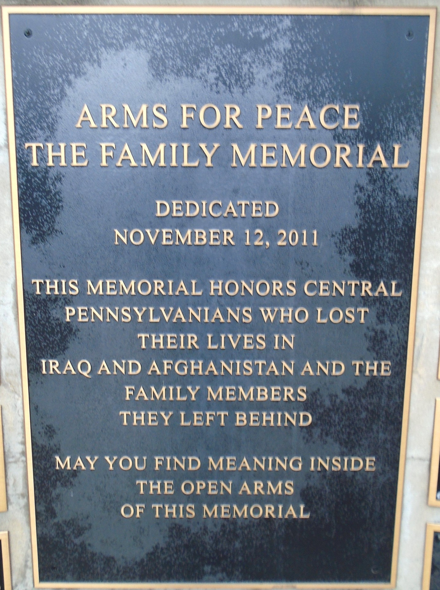 ARMS FOR PEACE THE FAMILY MEMORIAL PLAQUE A