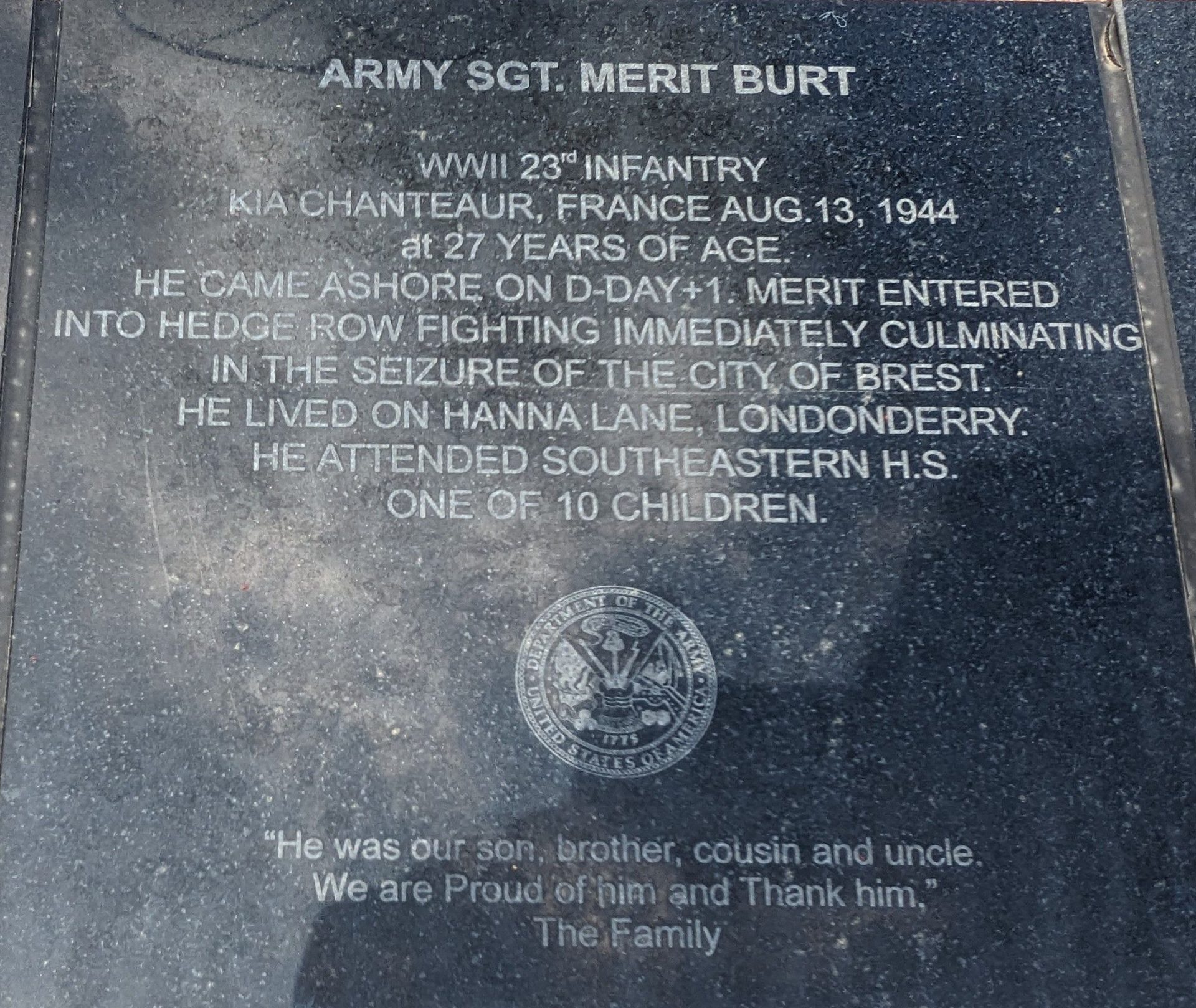 ARMY SGT. MERIT BURT WAR MEMORIAL STONE