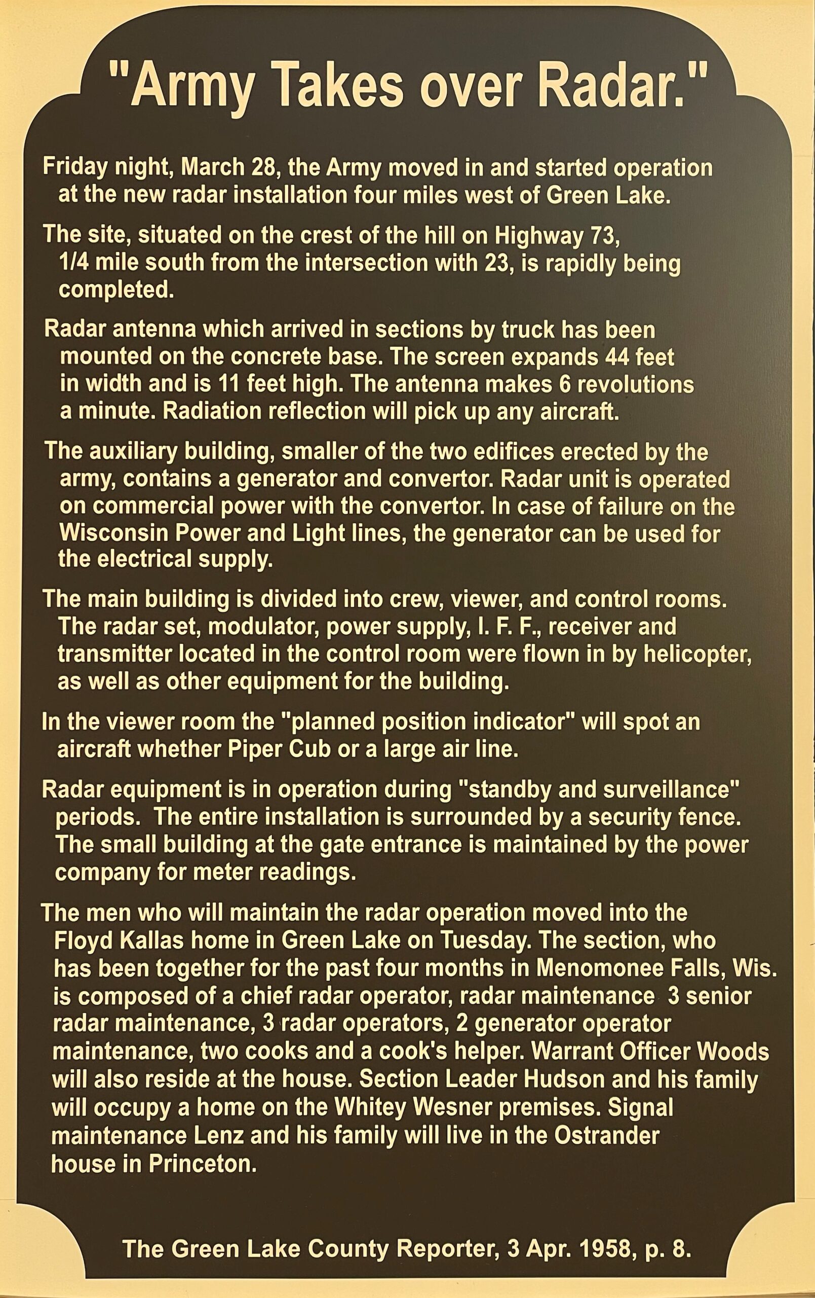 “ARMY TAKES OVER RADAR” MEMORIAL MARKER