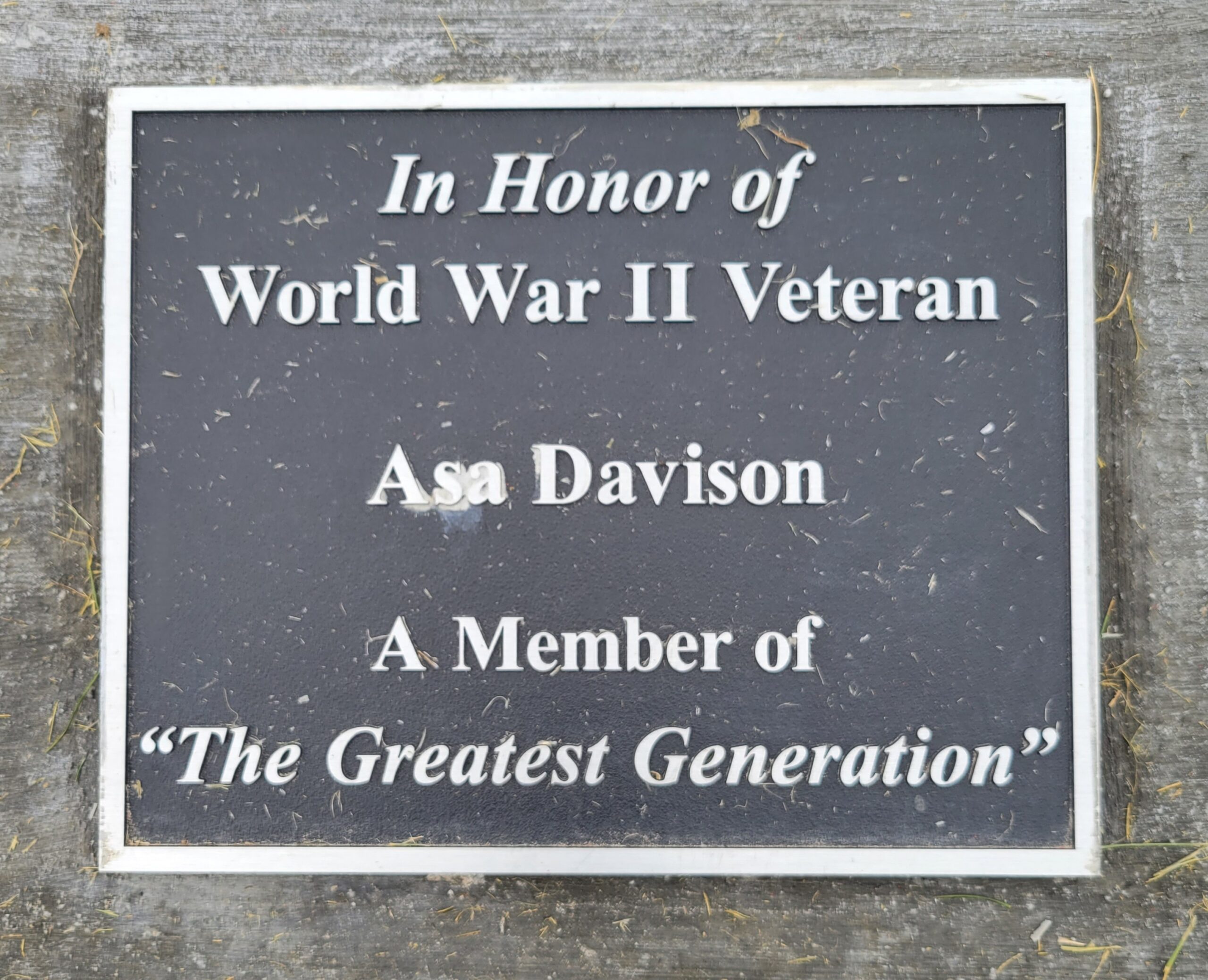 ASA DAVISON WORLD WAR II VETERAN MEMORIAL PLAQUE