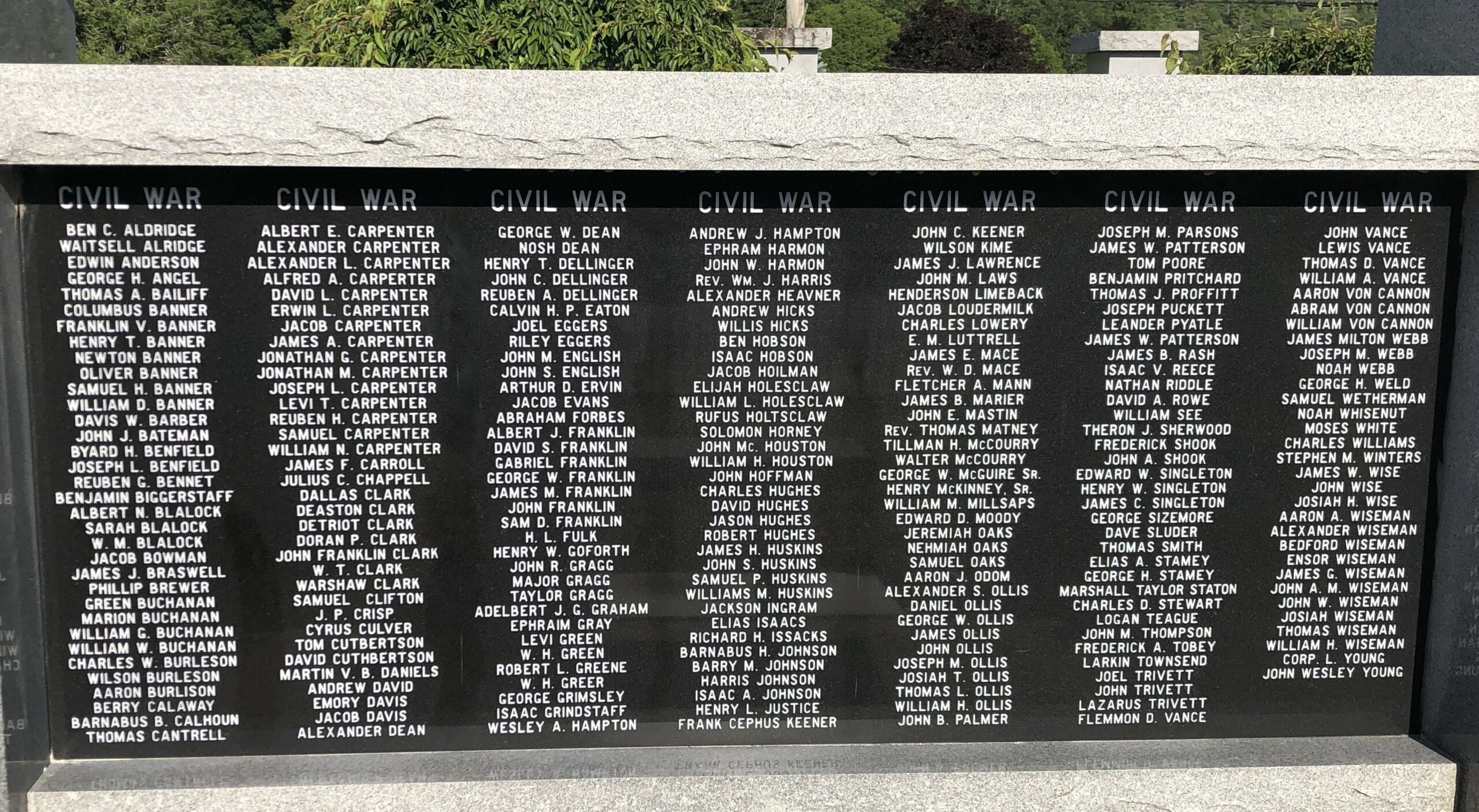 Wars Commemorated: CIVIL WAR