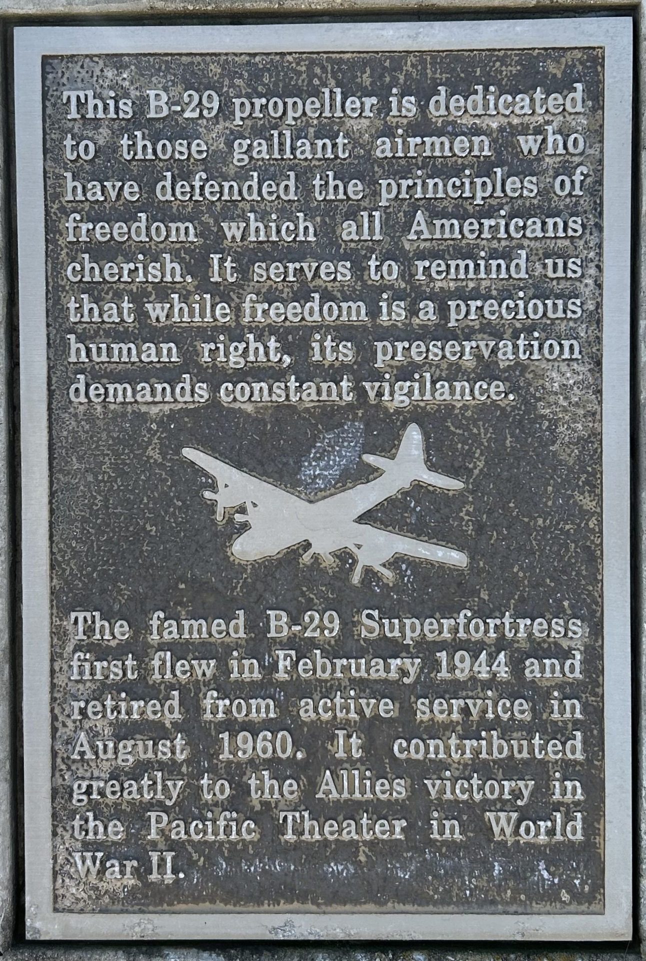 B-29 PROPELLER WAR MEMORIAL PLAQUE