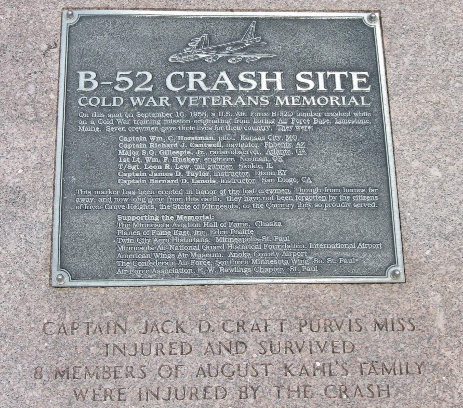 B-52 CRASH SITE COLD WAR VETERANS MEMORIAL PLAQUE