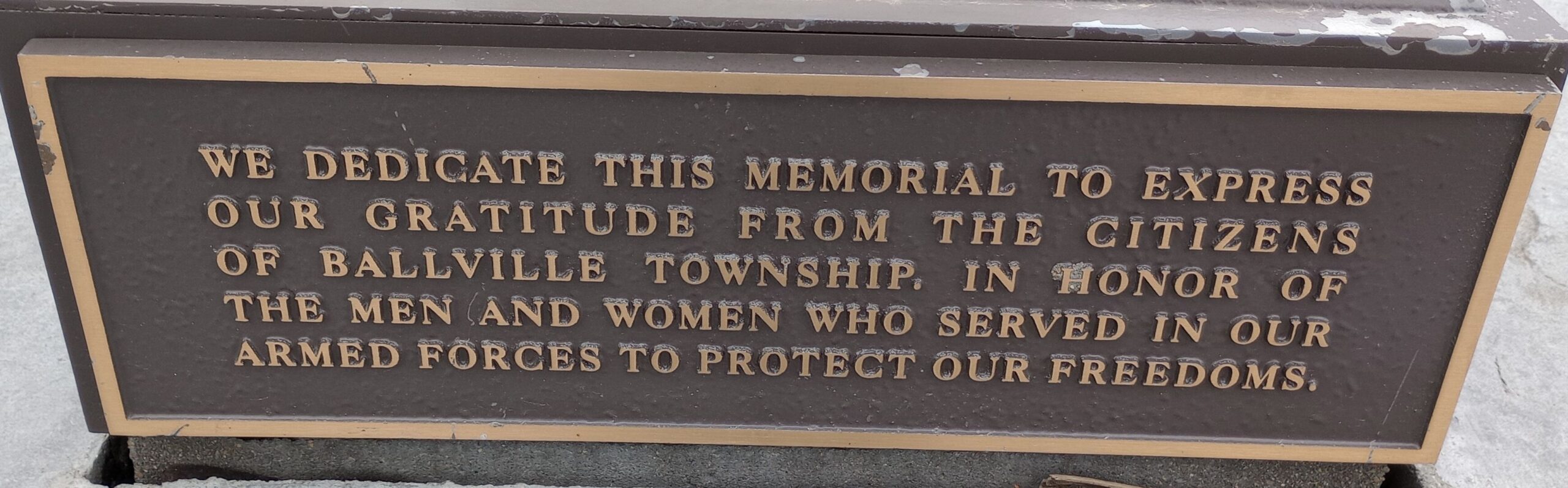 BALLVILLE TOWNSHIP WAR MEMORIAL BATTLEFIELD CROSS PLAQUE