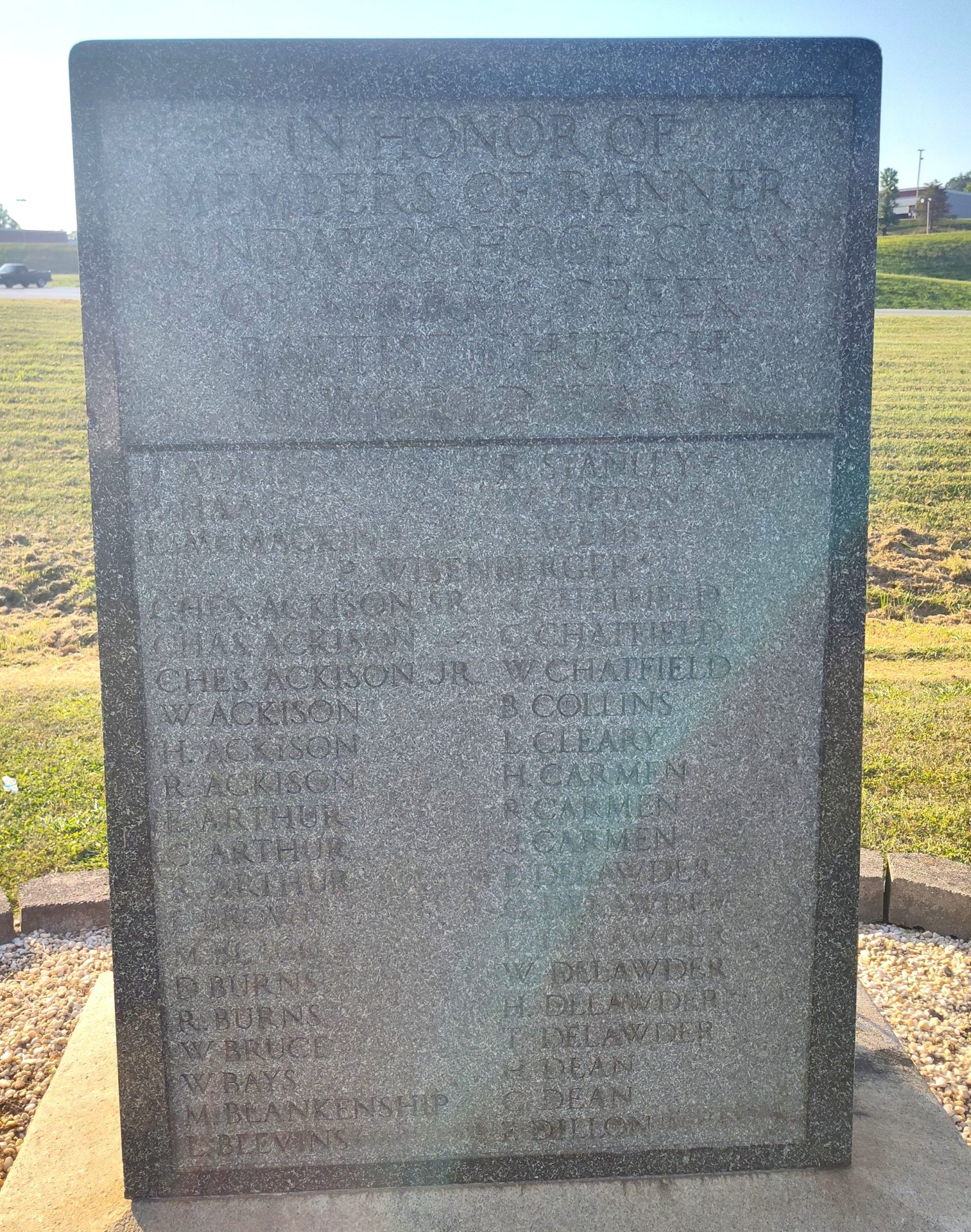 SEE ALSO-BANNER SUNDAY SCHOOL CLASS OF STORMS CREEK BAPTIST CHURCH WORLD WAR II MEMORIAL BACK