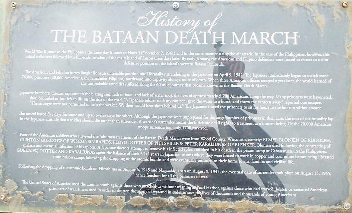 BATAAN DEATH MARCH MEMORIAL PLAQUE A