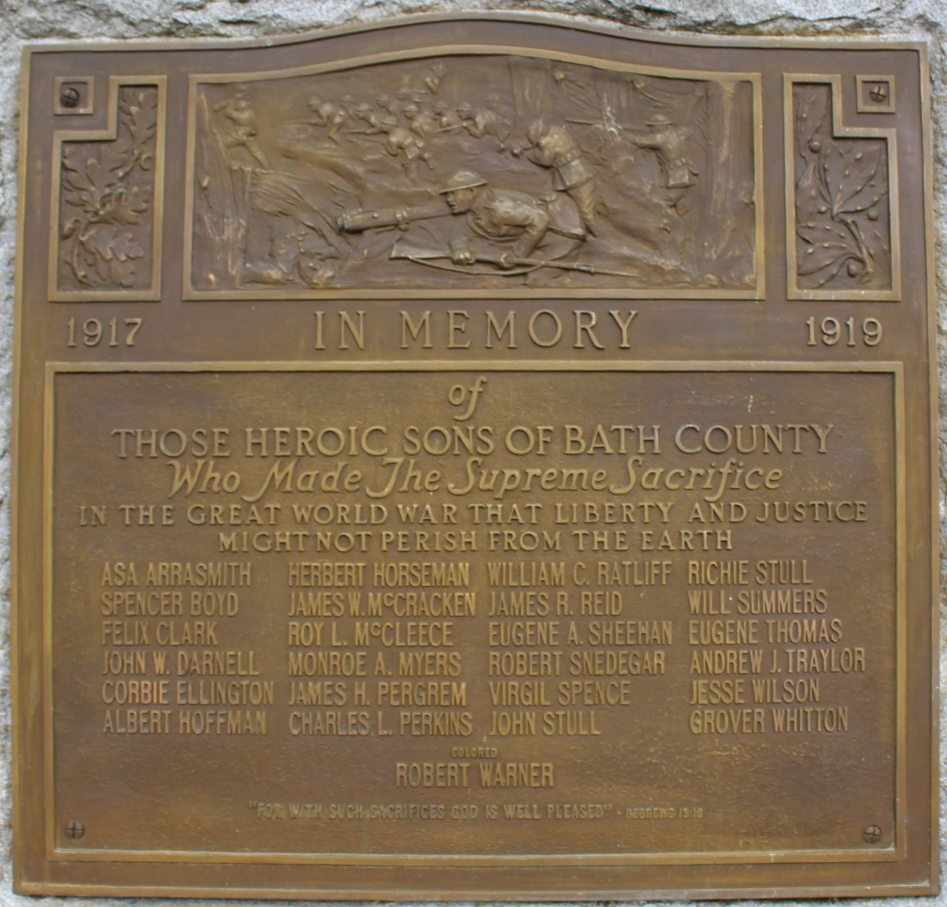 BATH COUNTY GREAT WORLD WAR MEMORIAL PLAQUE