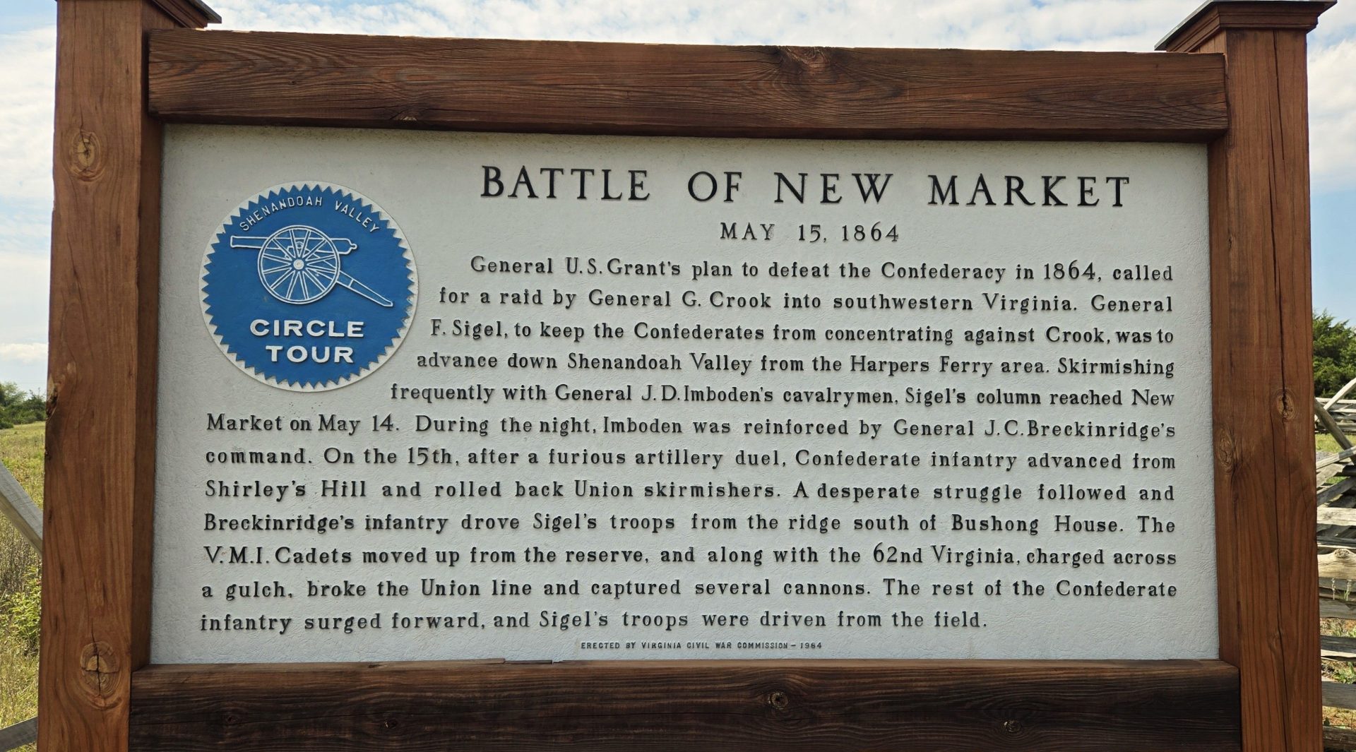 BATTLE OF NEW MARKET MAY 15, 1864 WAR MEMORIAL MARKER