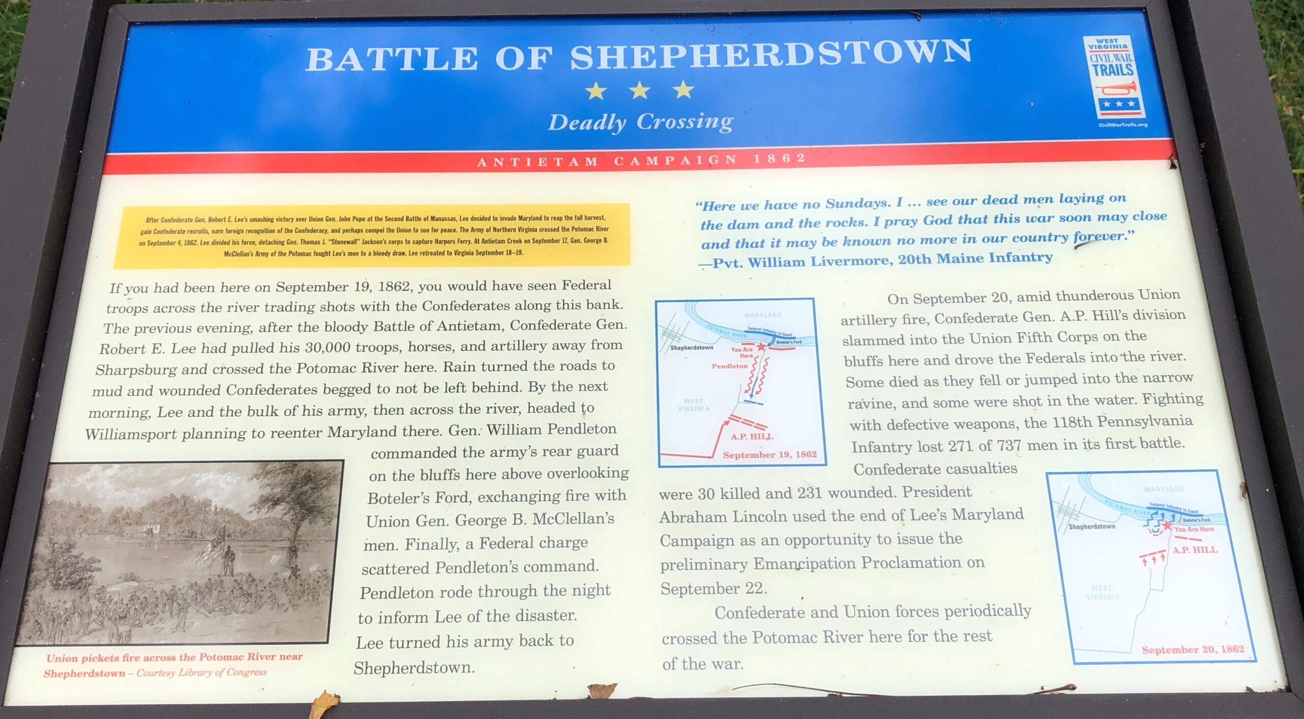 BATTLE OF SHEPHERDSTOWN DEADLY CROSSING MEMORIAL PANEL