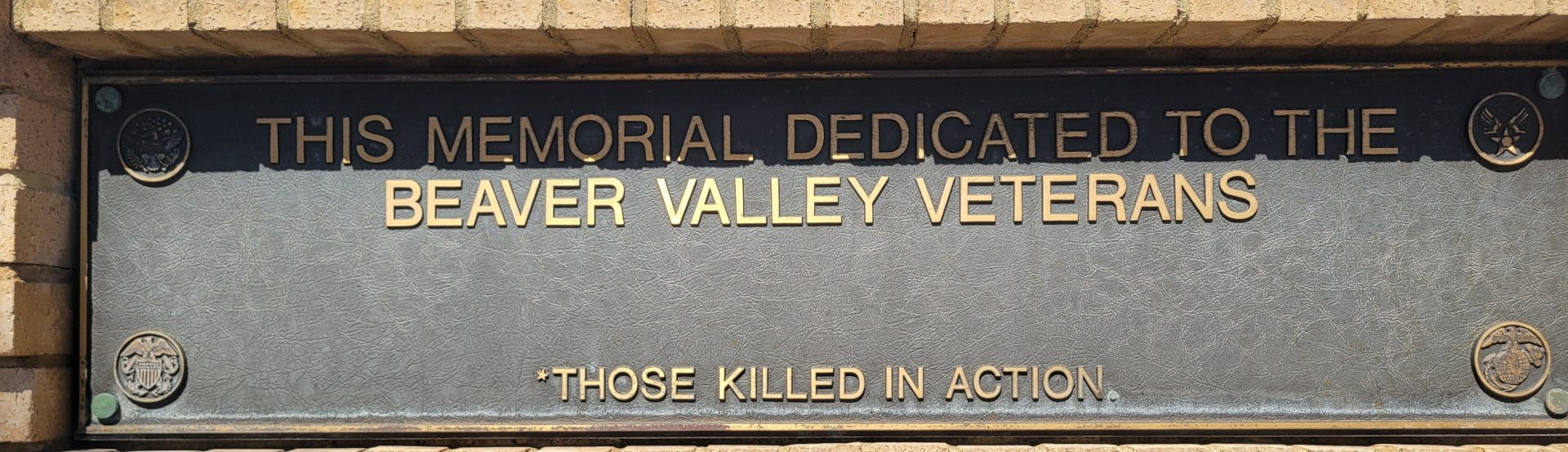 BEAVER VALLEY VETERANS WAR MEMORIAL PLAQUE A