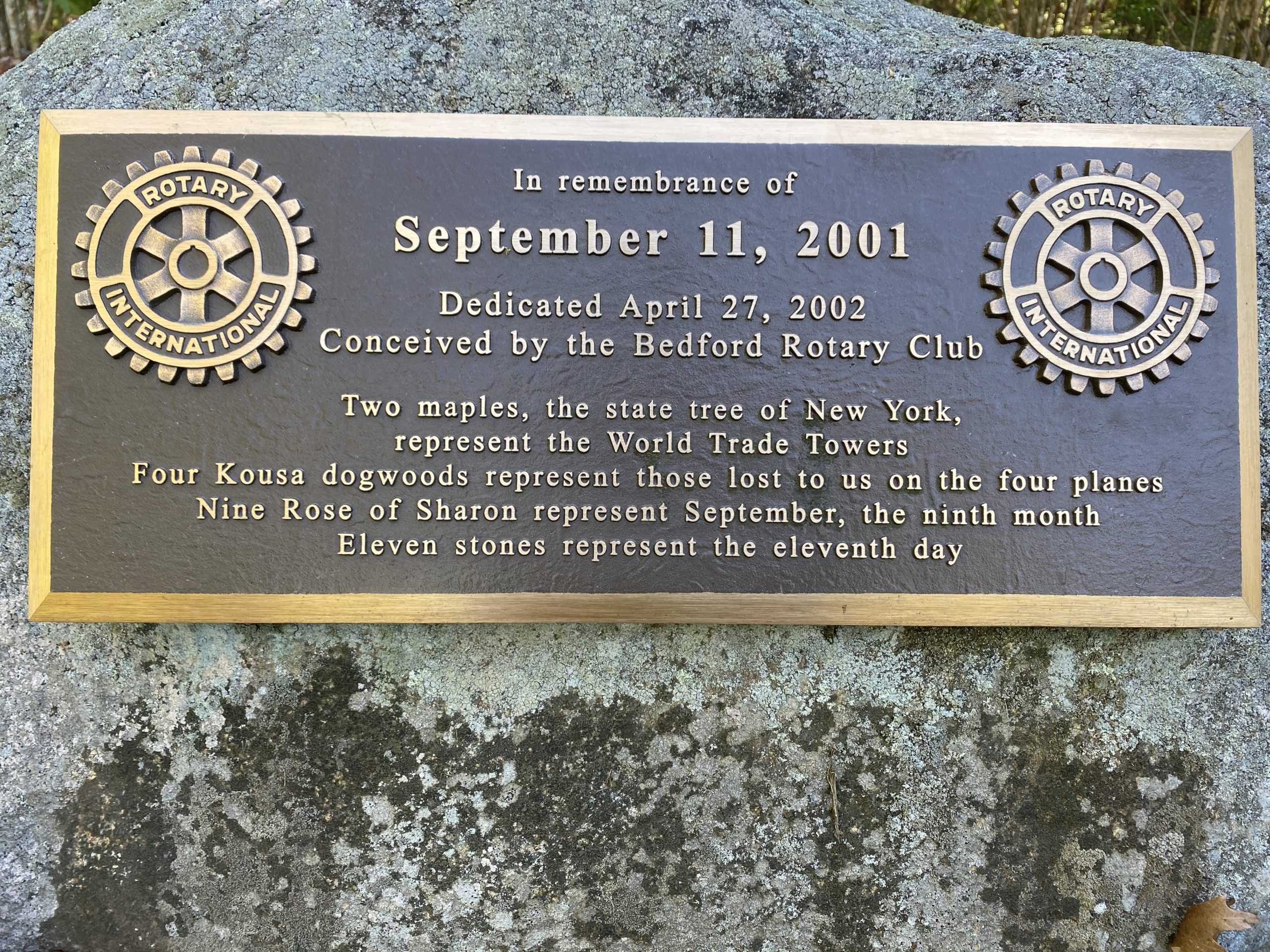 BEDFORD SEPTEMBER 11, 2001 WAR MEMORIAL PLAQUE