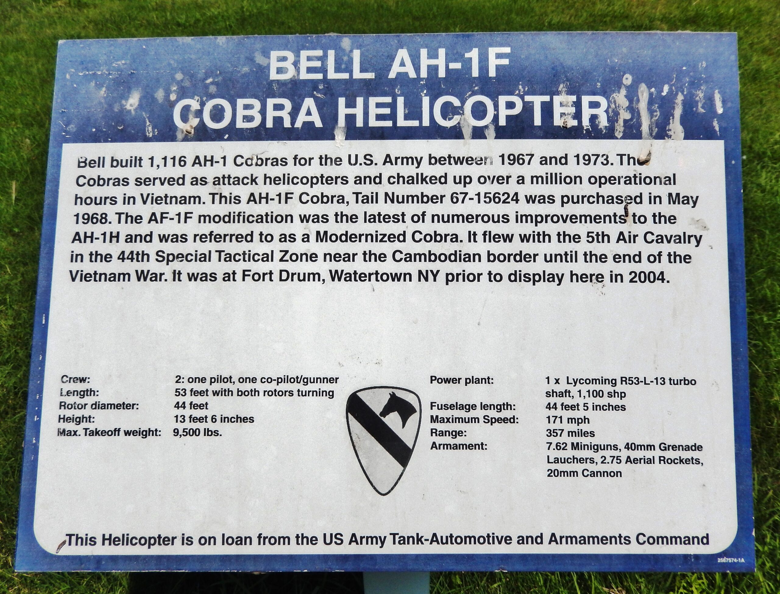 BELL AH-1F COBRA HELICOPTER MEMORIAL AIRCRAFT PLAQUE