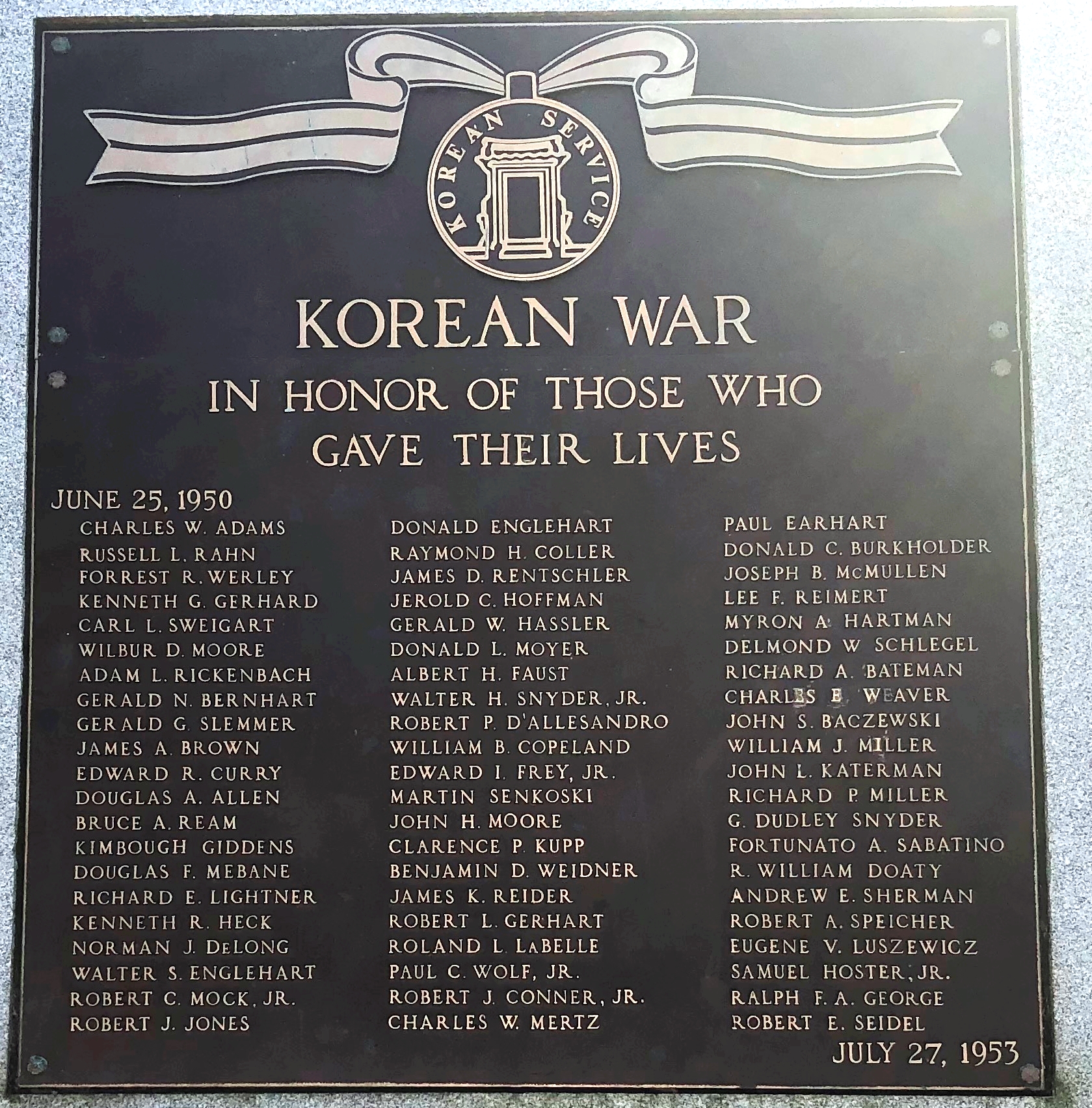 BERKS COUNTY KOREAN WAR MEMORIAL PLAQUE