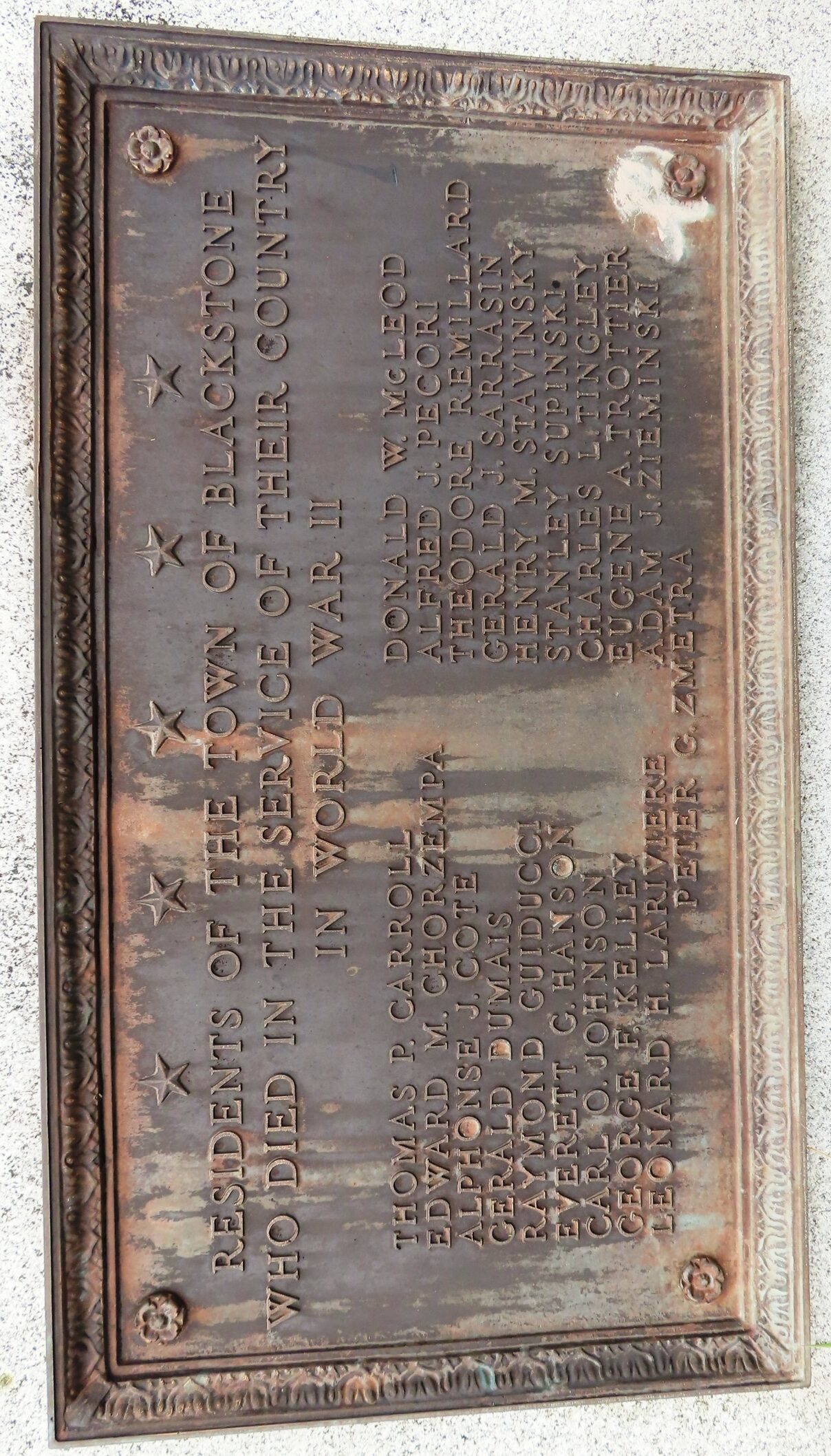 BLACKSTONE WORLD WAR II MEMORIAL PLAQUE
