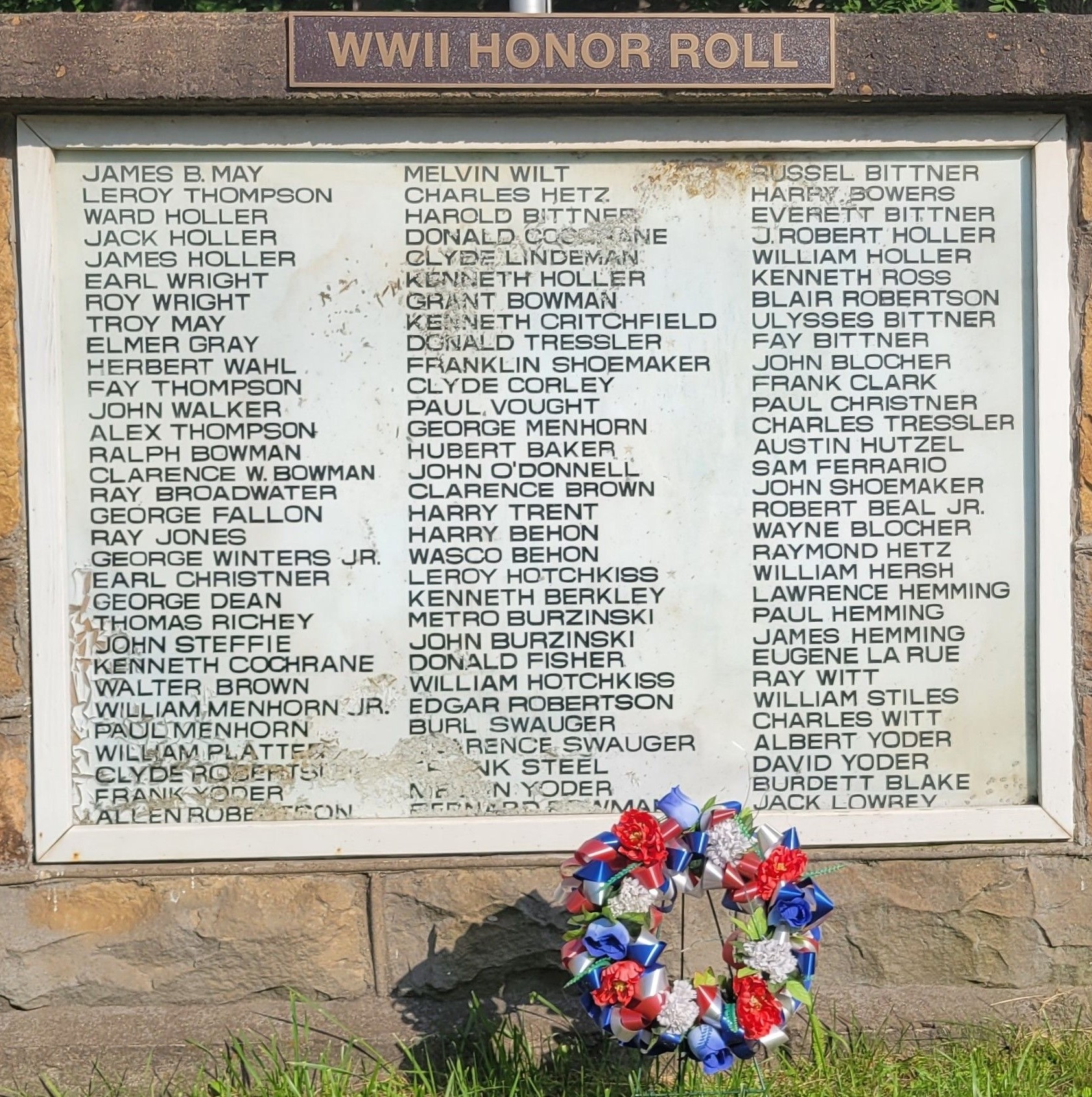 BOYNTON, PA WWII HONOR ROLL MEMORIAL PLAQUE